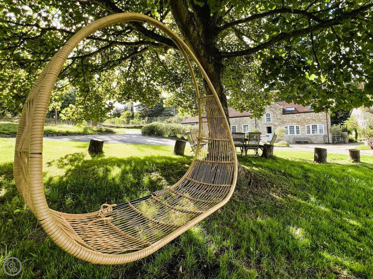 The remainder of the house comprises of five bedrooms, made up as both doubles and twins over both floors. The bold colour palette from the reception area is echoed in the bedroom decor, with each room having a distinctive pop of colour. Both floors are served by a family style bathroom, with neutral decoration giving the spaces a sense of calm. Peep out of the sash windows and you will enjoy a view over the extensive garden and orchard; a reminder that you are surrounded by nature - look at the right time and you might spot some of the local wildlife, like the shy red squirrels which are native to the island or perhaps a striking peregrine falcon or barn owl. The dining table and chairs thoughtfully placed under the canopy of a wide-reaching tree in front of the house makes an idyllic spot for long, lazy summer lunches or dinners; wrap up in blankets as the night draws in. You might have to be quick to jump into the hanging chair so you can watch the work bees set the table, or perhaps steel a quiet moment suspended in time for reading.