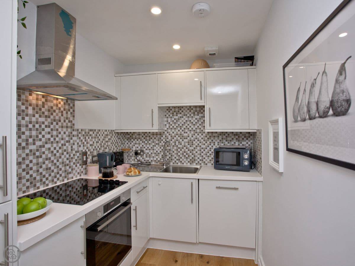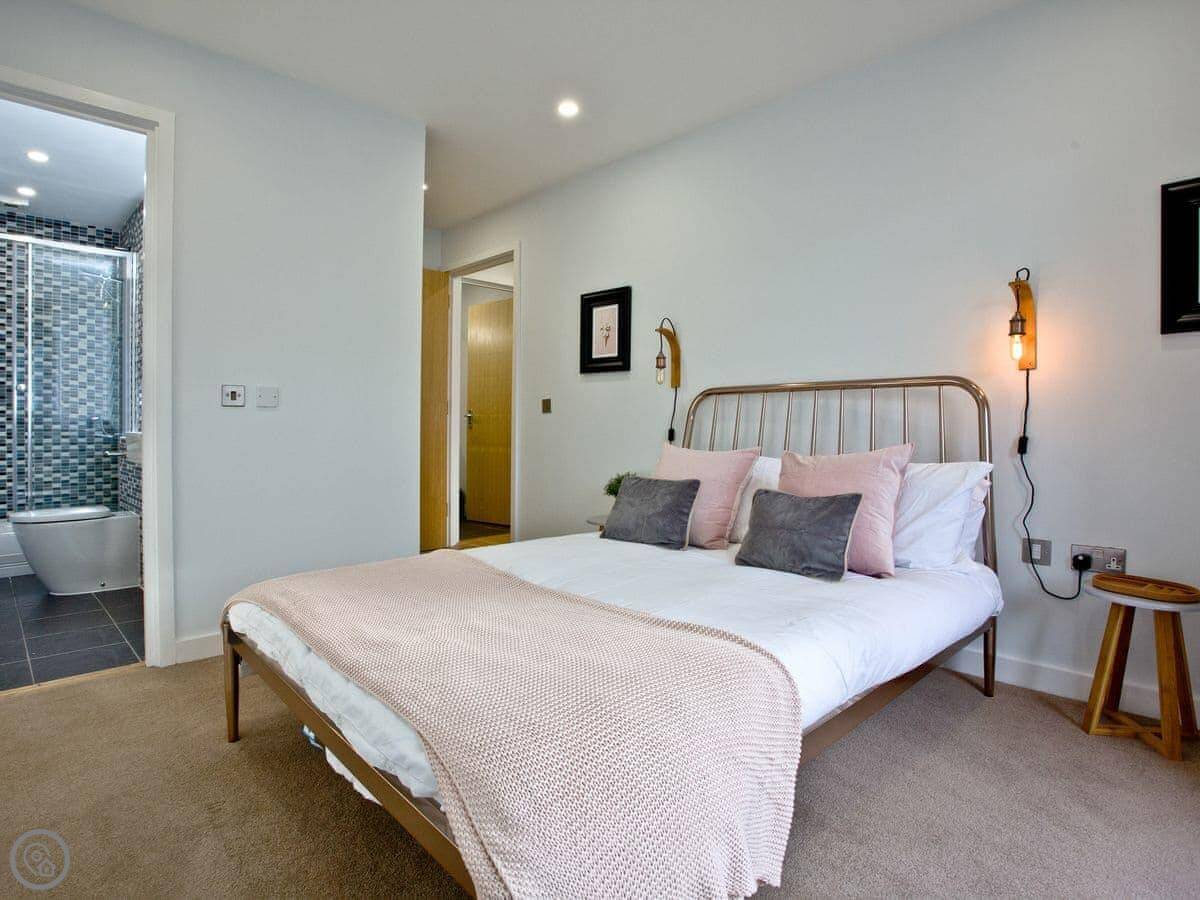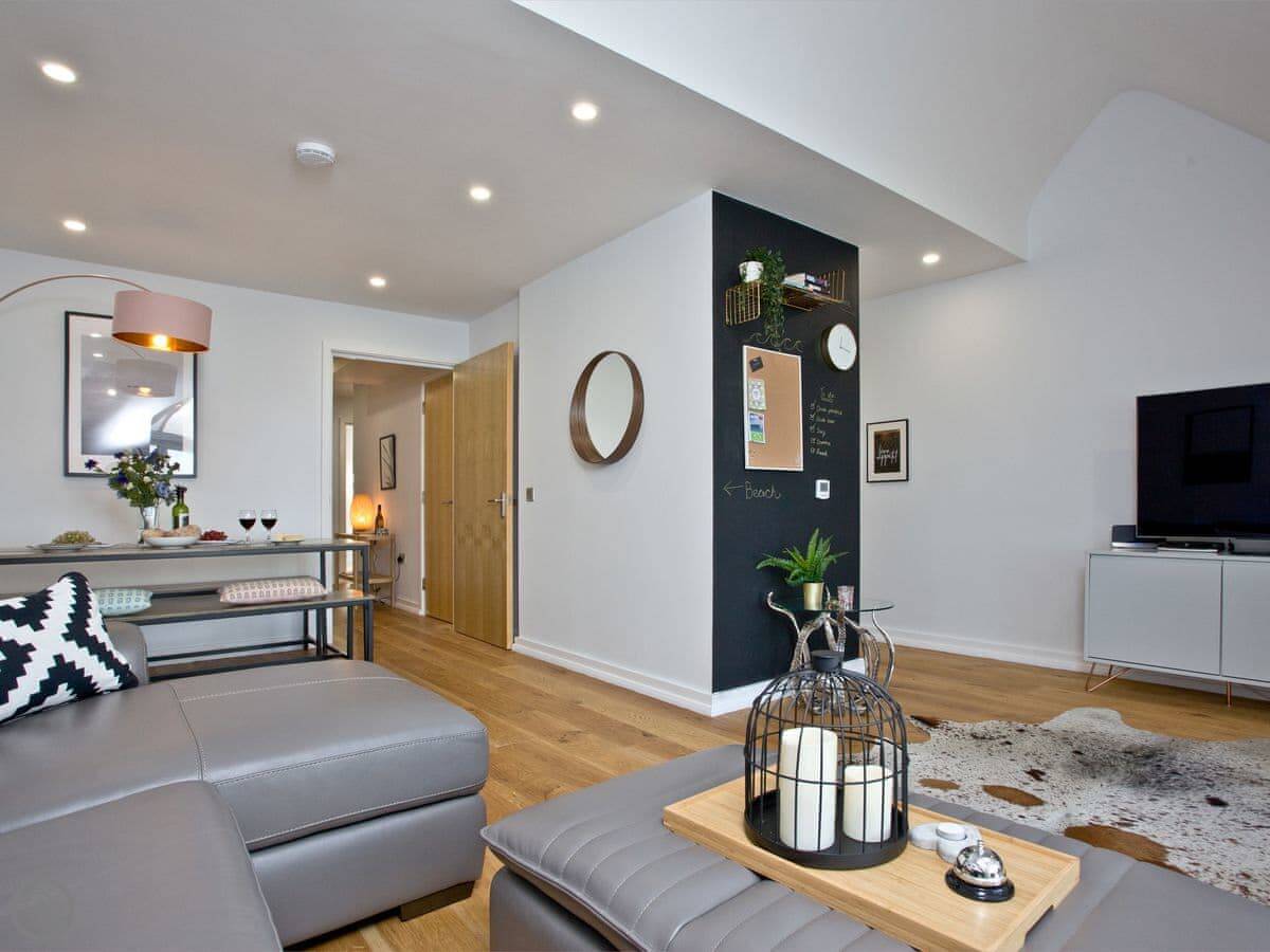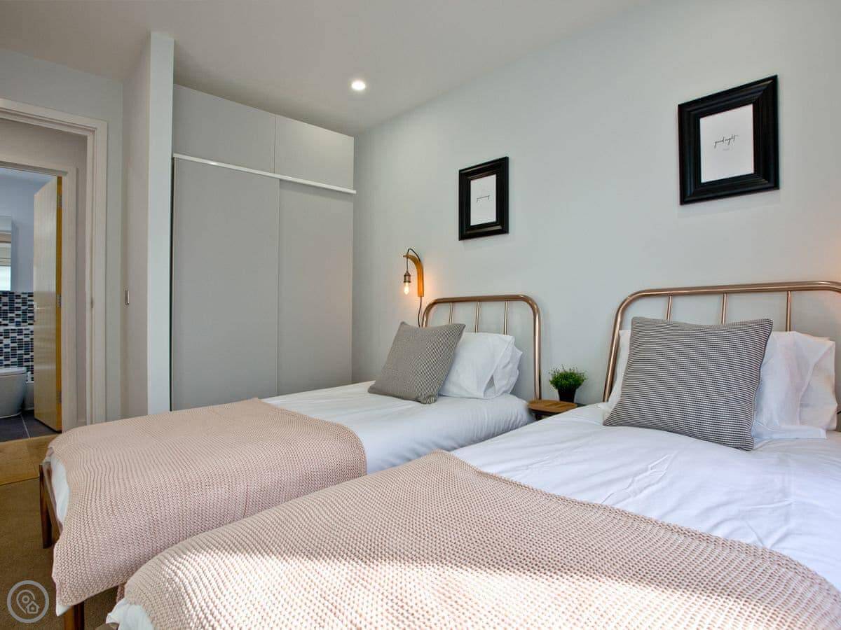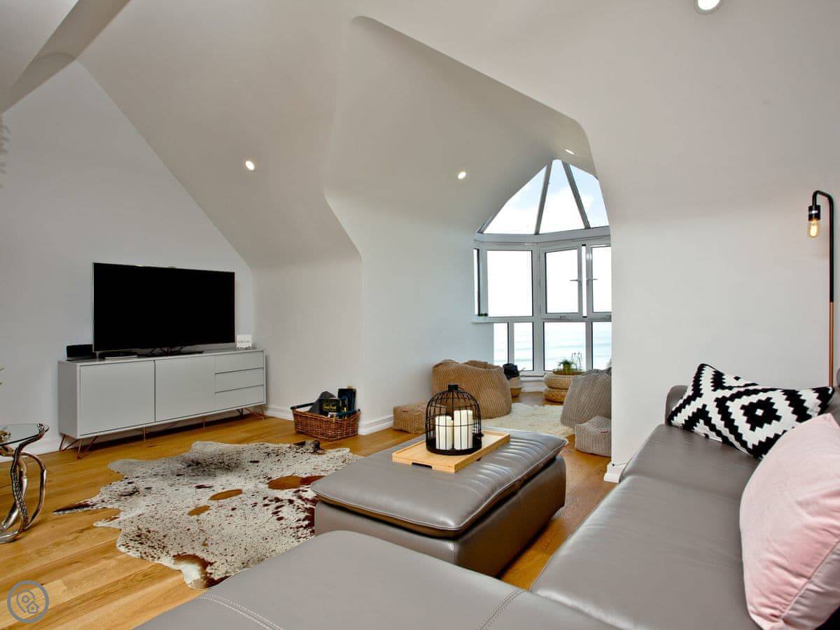 Internally the apartment is bright and thoughtfully furnished with comfort and relaxation in mind. The apartment has two bedrooms consisting of a double room with en-suite shower room and a twin room, with separate family bathroom. The open plan living, dining and kitchen area is ideal for socialising with a 65" Smart TV and plenty of seating, so you can have that near cinema experience if you don’t fancy going out. The light and airy kitchen is newly fitted, whilst the living area has panoramic sea views over Towan beach.