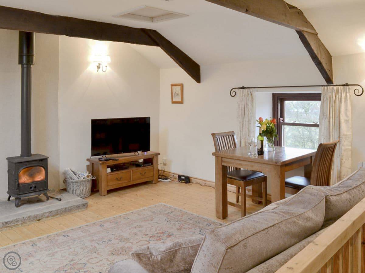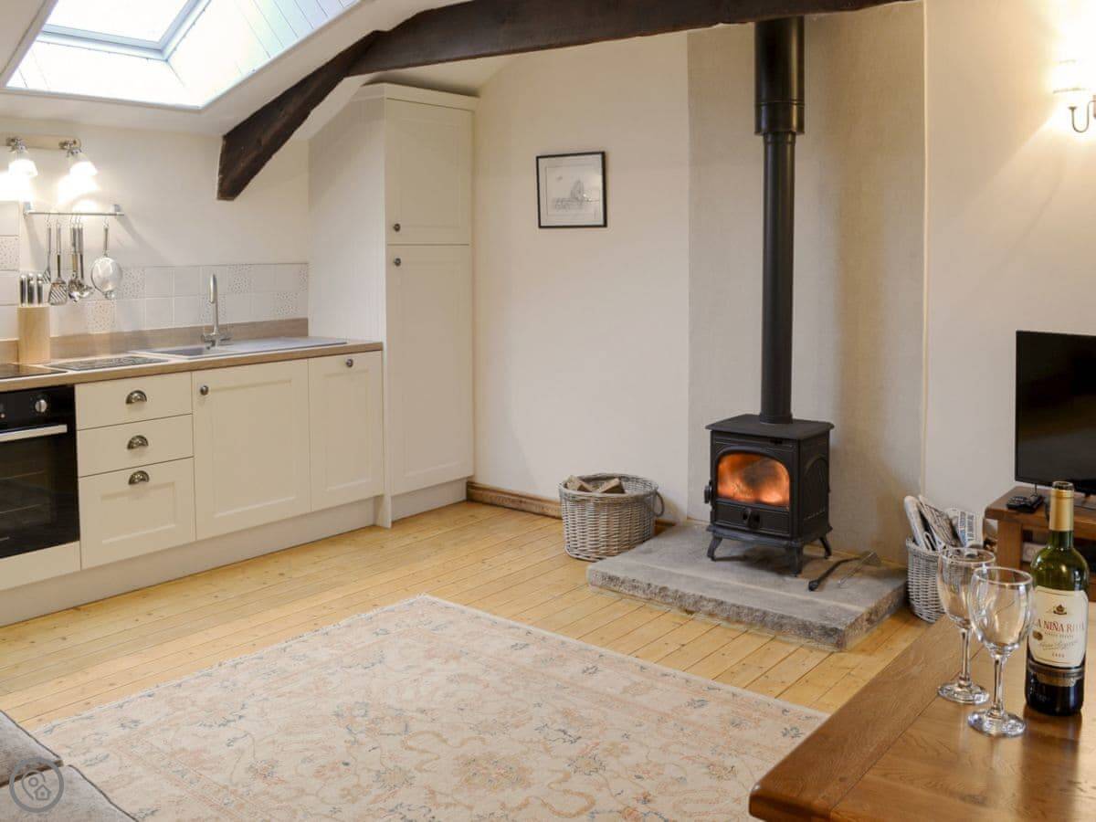 No 6 Swallowholm Cottages is set in a small hamlet in picturesque Arkengarthdale, just 4 miles from Reeth and within the Yorkshire Dales National Park. Approached along a short farm track and surrounded by magnificent scenery this Grade II listed terraced cottage dating back to the 1800s has been renovated to a great standard, retaining all of the original features and character whilst also offering contemporary appliances and furnishings. Situated over two floors, there is an open plan living space on the first floor which allows you to enjoy fabulous views right across the river and dale. The kitchen area is well-equipped and well designed to make the most of the space on the first floor. The living area is comfortable and well furnished throughout. The wood burner is a super feature too, perfect for those cosy, romantic nights in. On the ground floor there is a very well presented kingsize bedroom with more fabulous views of the Yorkshire Dales. A good quality en-suite bathroom completes the picture. Perfectly located for couples wanting to enjoy a special, romantic break, walkers, cyclists and nature lovers, No 6 Swallowholm Cottages is hidden away and surrounded by countryside. There are many walks right from the doorstep and the local 18th century inn serves excellent food and is just a short stroll away. The popular market town of Reeth has everyday shopping, craft shops, pubs and tea rooms and lies just over 3 miles away. Richmond with its Georgian theatre, along with Leyburn and Hawes are just a short drive away. Arkengarthdale is a truly unspoilt corner of Yorkshire with walks from the doorstep across hills and moorland, or make a journey over the Stang to the market town of Barnard Castle. Shop 4 miles, pub and restaurant ¼ mile.