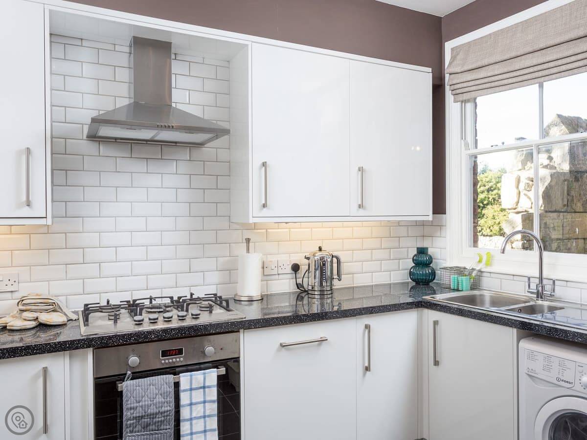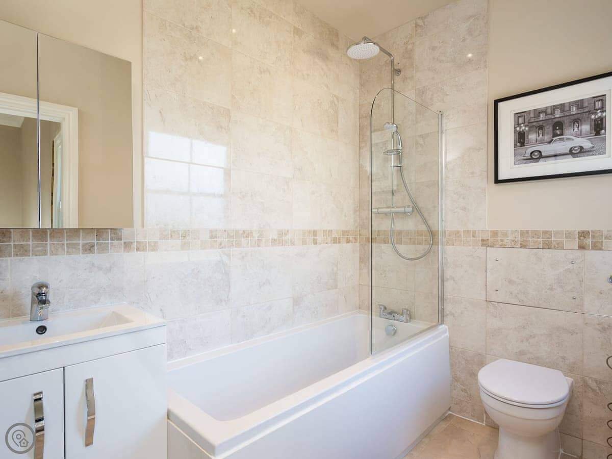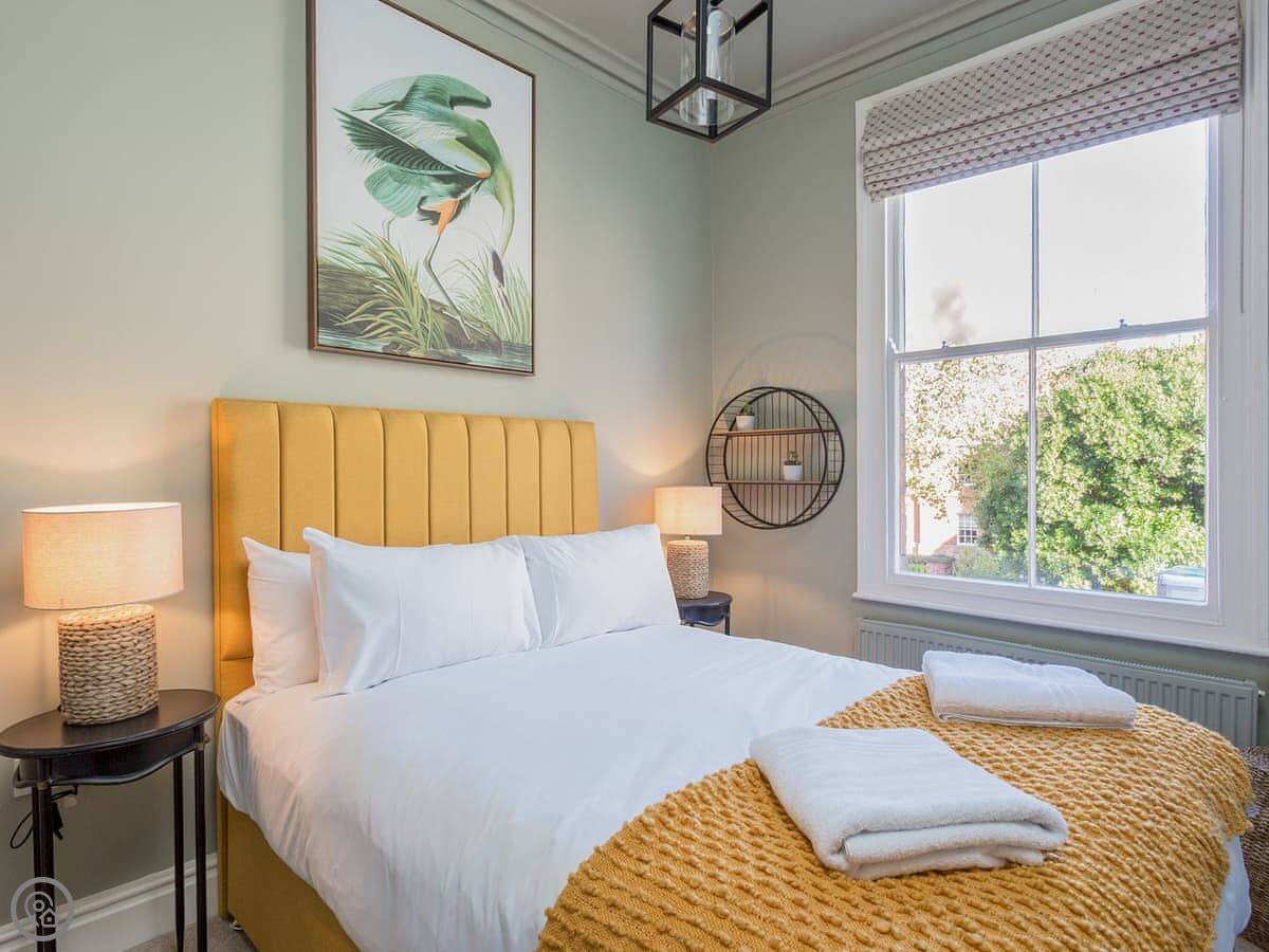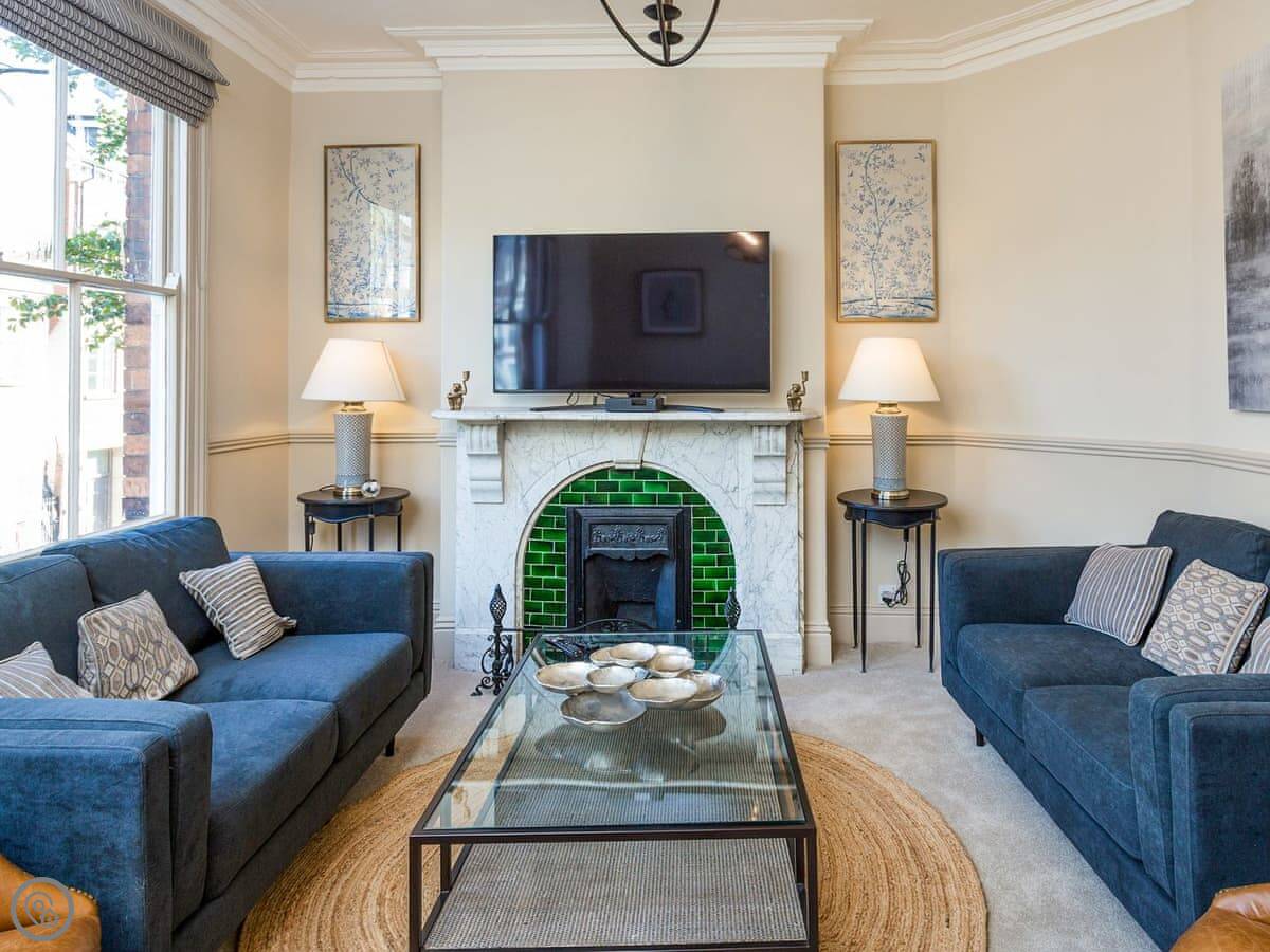Comfortably designed for up to six guests, the maisonette provides generous living space with a dining table that seats six, as well as a breakfast bar for two in the contemporary, fitted kitted. The bedrooms have king or double beds with sumptuous mattresses, all of which are UK manufactured, and the principal bedroom is generously sized with a period features and en-suite shower room. There is both a bath tub and shower in the family bathroom.