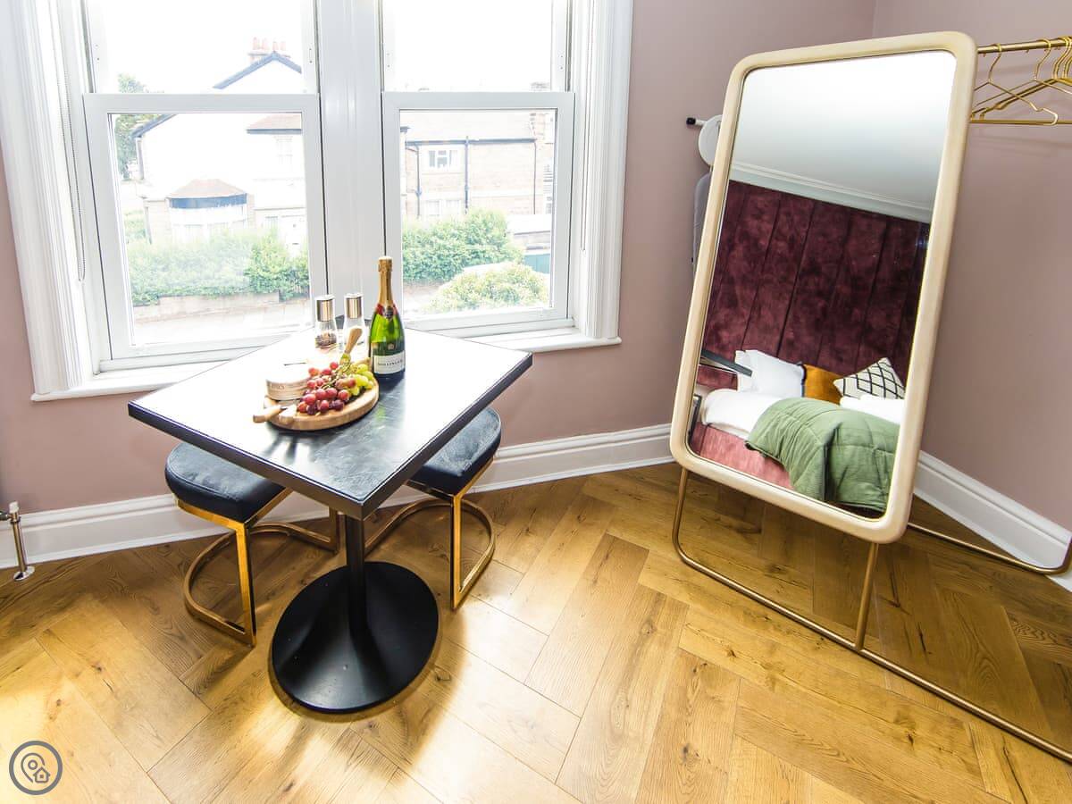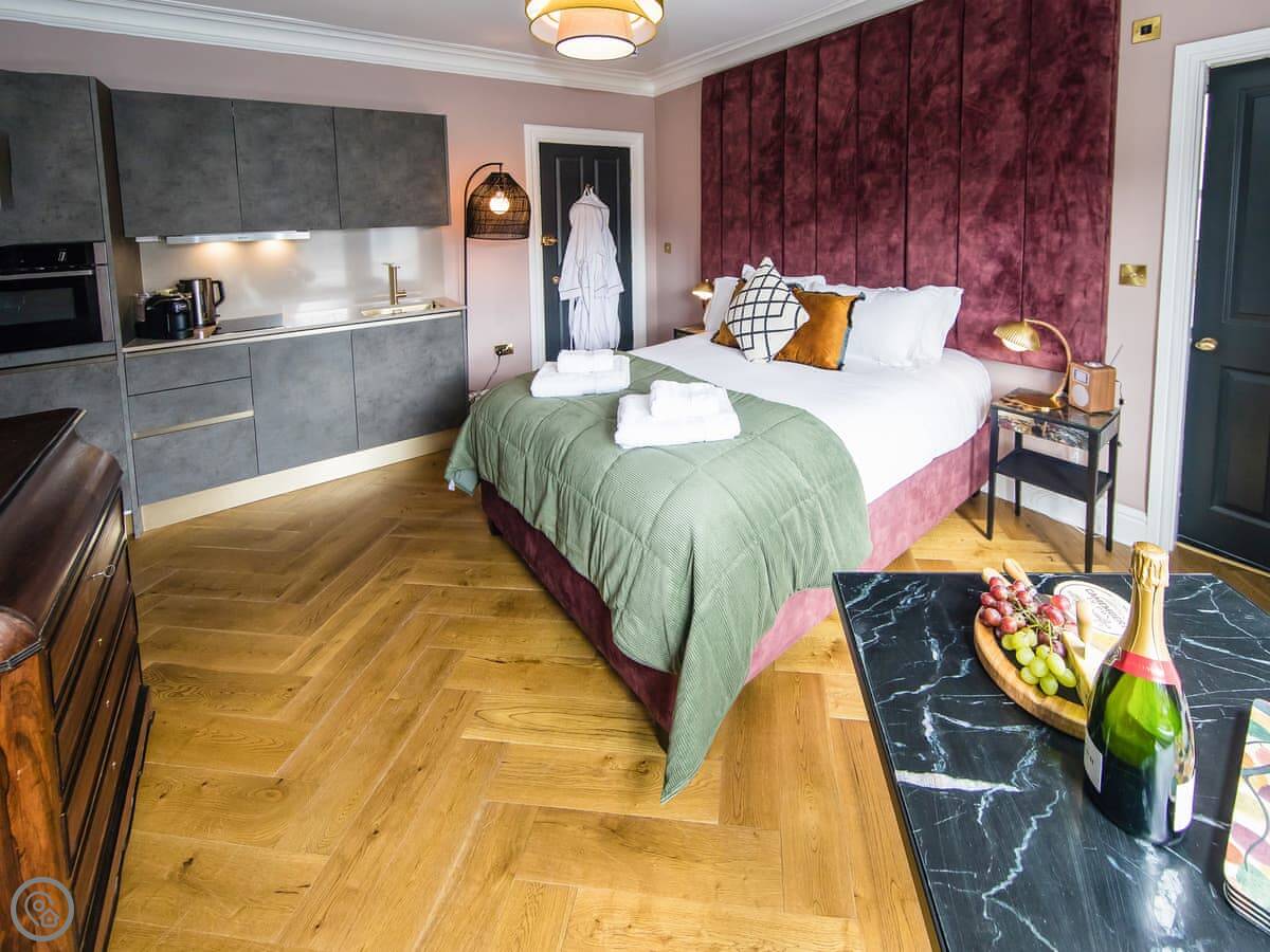 Dragon Villas is a beautiful Victorian property in the popular Dragon Road area of Harrogate, which is a short walk into the fabulous town centre. Choose from nine brand new, wonderful apartments and studios of varying sizes to suit every aspiration and budget. Betty’s Studio is a first floor, king-sized studio. Featuring high ceilings and large window overlooking the side garden. A wonderfully comfortable king bed, luxurious linens, bath robes and fabulously soft towels. This suite also features a well-designed, compact kitchen with all the utensils and gadgets to prepare a lovely meal. Dragons Villa’s is just a 5-minute walk into the centre of Harrogate meaning you have so much to explore. You have the world-famous Betty’s Tearoom right on your doorstop along with many fantastic restaurants, pubs and independent shops. The Valley Gardens are nearby and RHS Harlow Carr can be found by foot, taking a beautiful walk through The Valley Gardens and Pinewood. Let us not forget that Harrogate is on the doorstep of the Yorkshire Dales meaning there is plenty of opportunities to explore what Yorkshire has to offer, with it being on foot or by bike you will always have plenty to see and investigate. The only issue you will have staying at Dragons Nest is fitting everything in so why not book a few extra days!