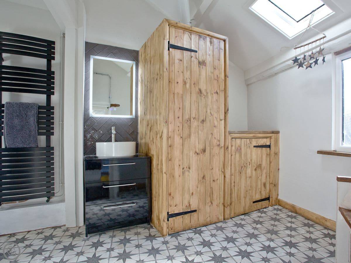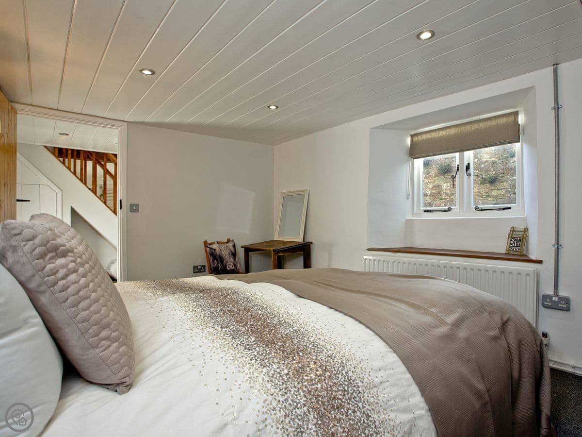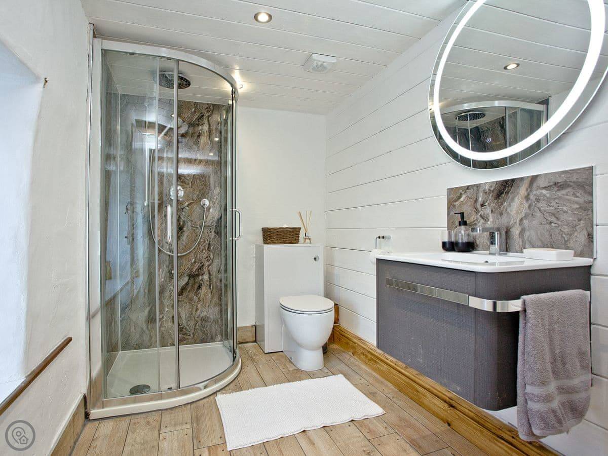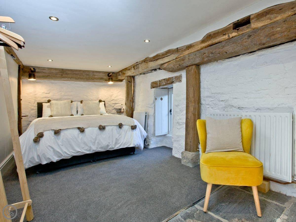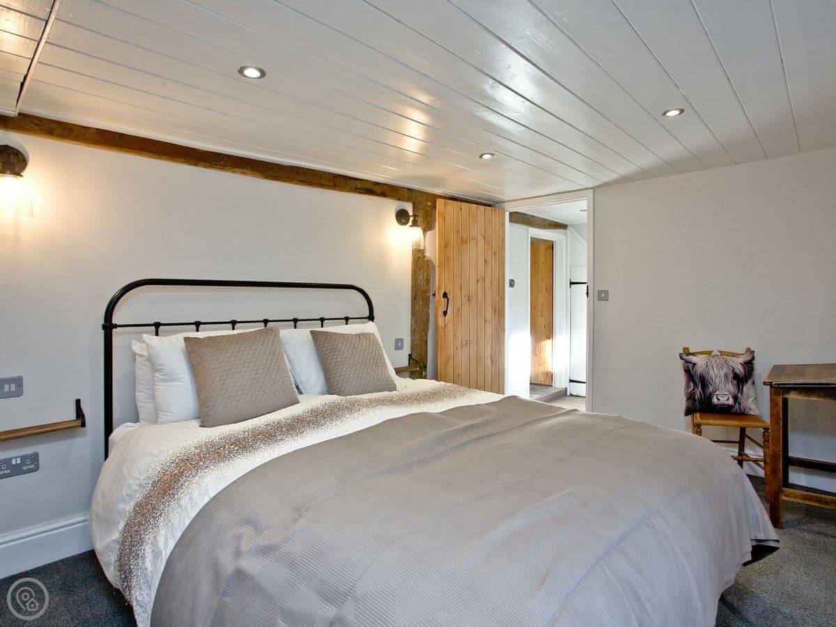 It's detached and sleeps six people. There are three bedrooms. Two have king-size beds, one has a double. One of the king-size beds can be split into two small singles if you ask beforehand. There are two shower rooms, one upstairs and one downstairs. The stairs are pretty steep. It's an old building. The rating is 4 Star.