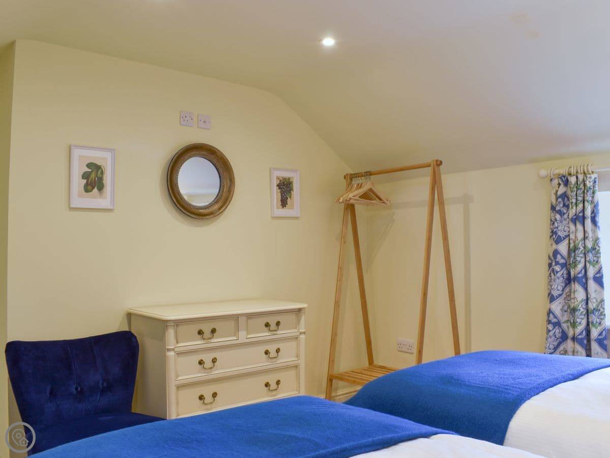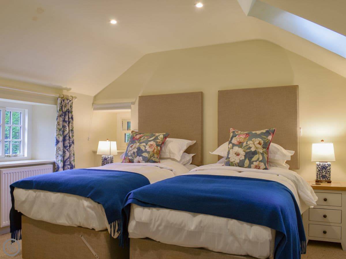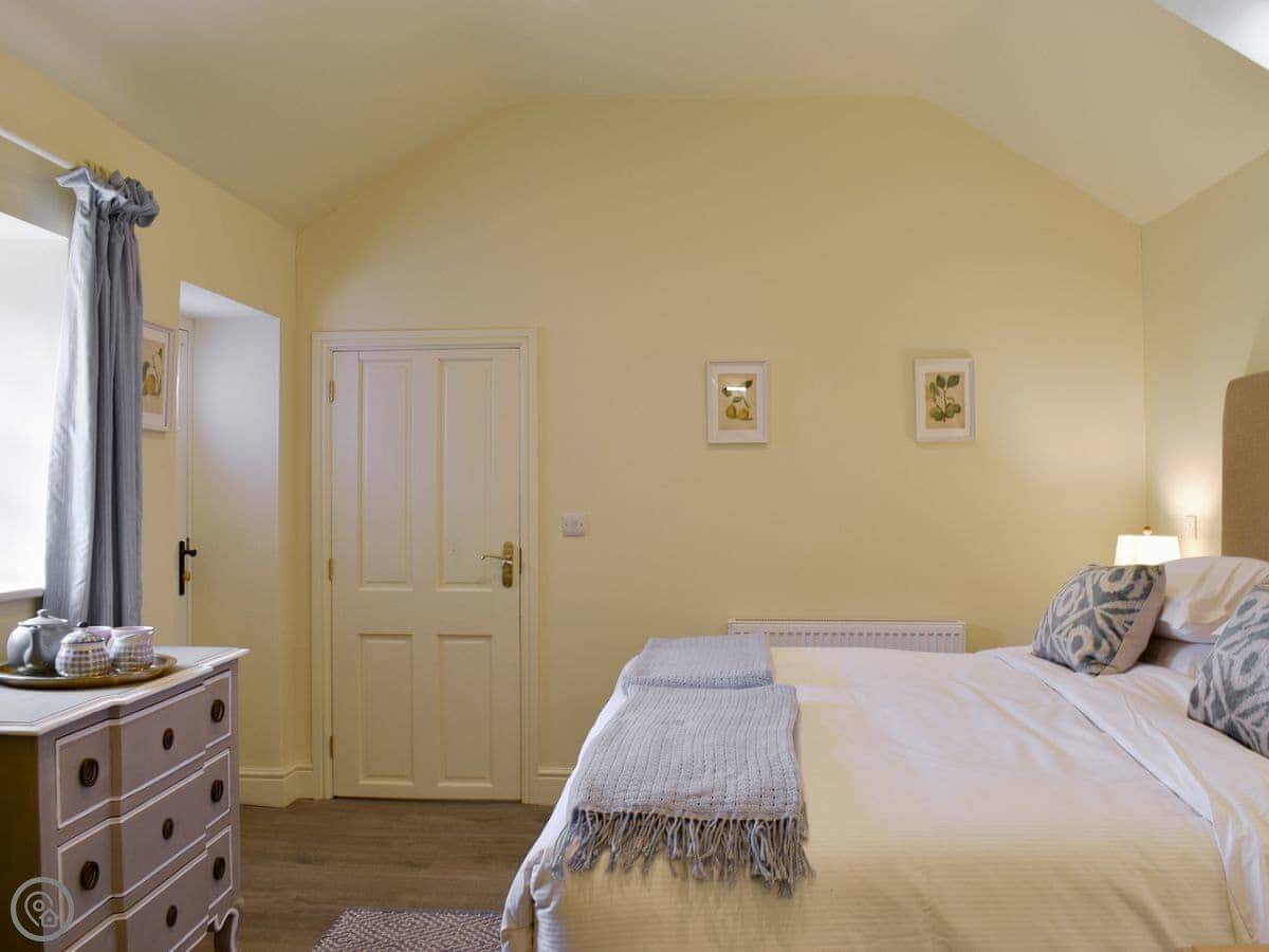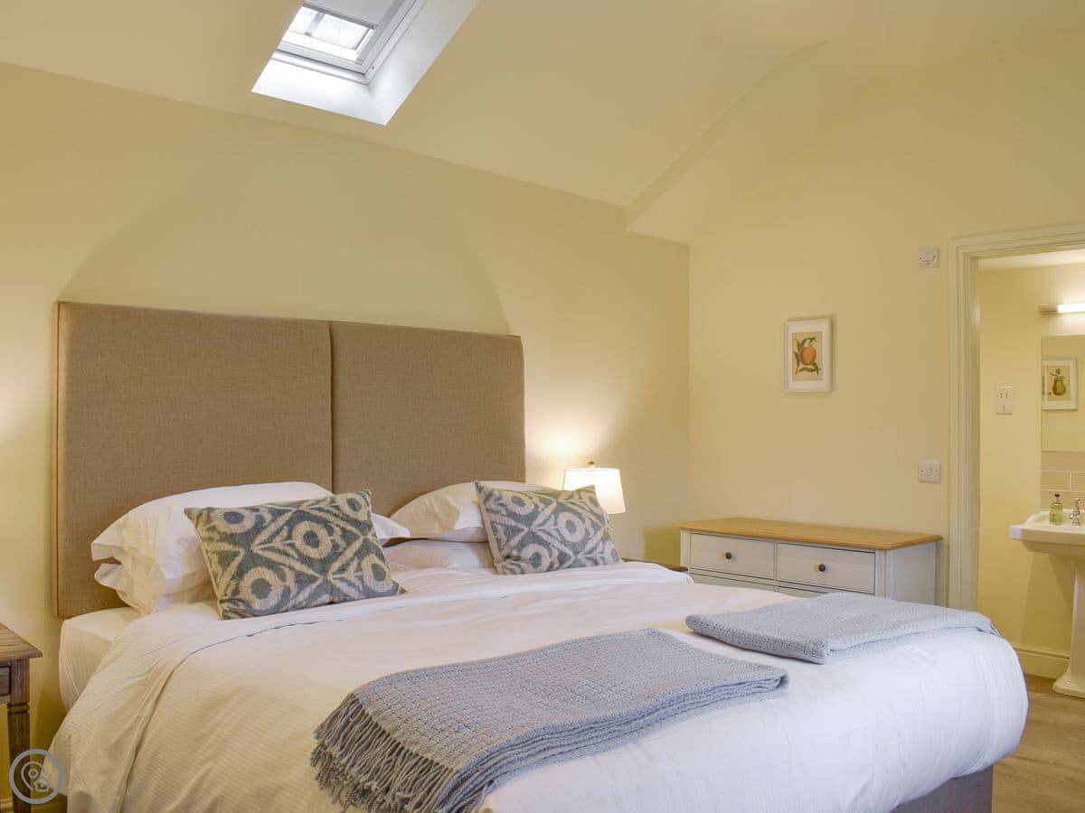 It sleeps four. Two bedrooms, both with their own bathrooms. The beds are zip-and-link, so you can have them as twins or super kings. They're good mattresses. The ceilings are low in the living area, so watch your head if you're tall.
