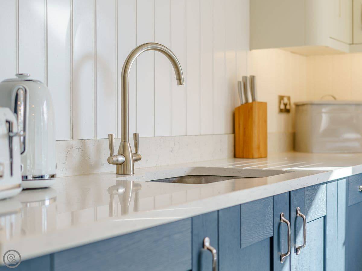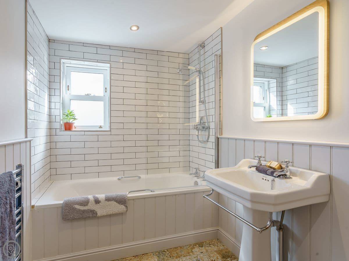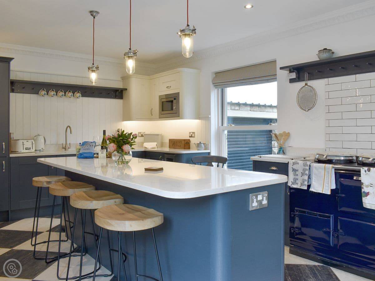 It sleeps eight. Four bedrooms, three bathrooms. It's got a 4 Star rating. The refurbishment is high spec, lots of vintage floor tiles and wood. It feels solid and clean.