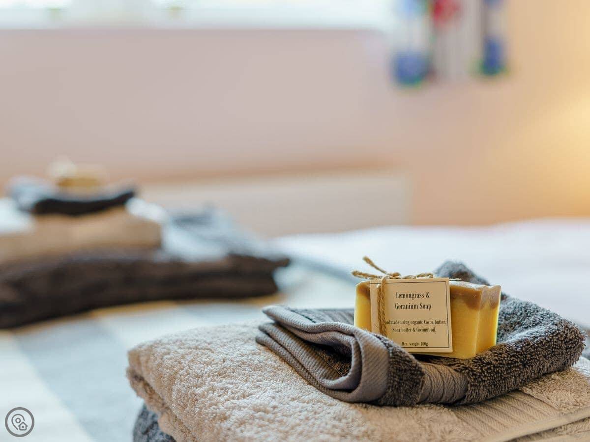 Facilities: there's parking, a wood burner, a dishwasher, washing machine, bike storage, and wifi. Bedding and towels are included. We take one well-behaved dog.