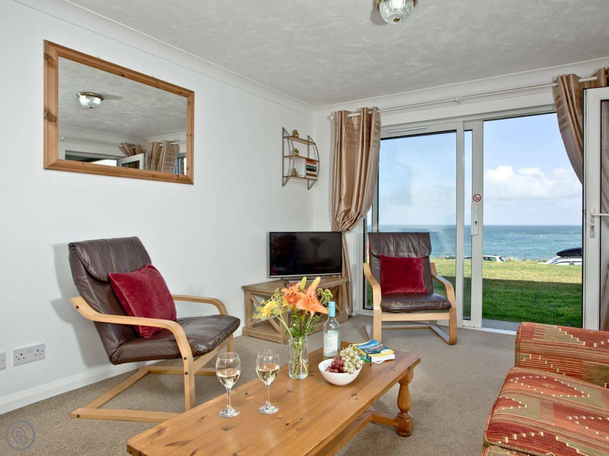 This is Apartment 2 Waters Edge. It's a ground floor apartment in Newquay, on the Pentire headland. The main thing is the view. You look right out over Fistral Beach and the sea.