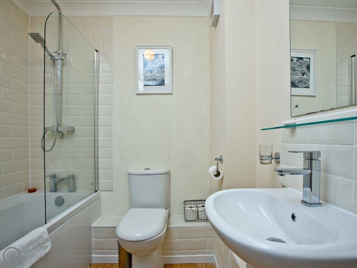 For facilities, you've got parking on site, WiFi, a TV, a washing machine. Bedding and towels are included. There's a cot and highchair if you need them. One well-behaved dog is allowed.