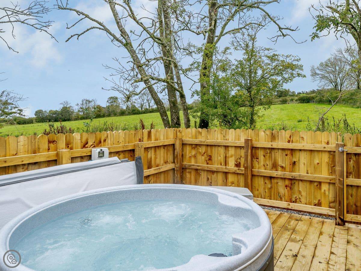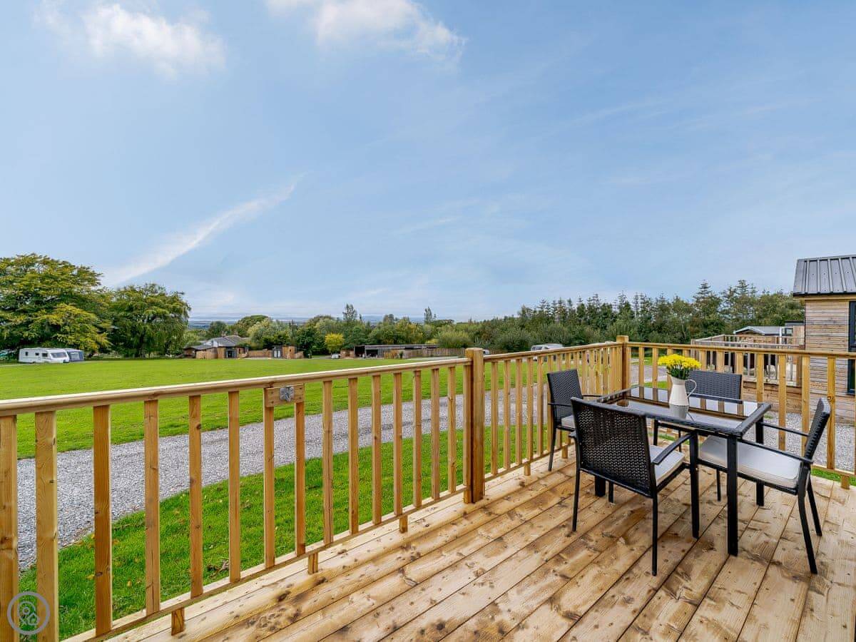 Outside there's a deck with a barbecue, and a private hot tub. The view from the tub looks out towards Scotland and the Solway Plains.