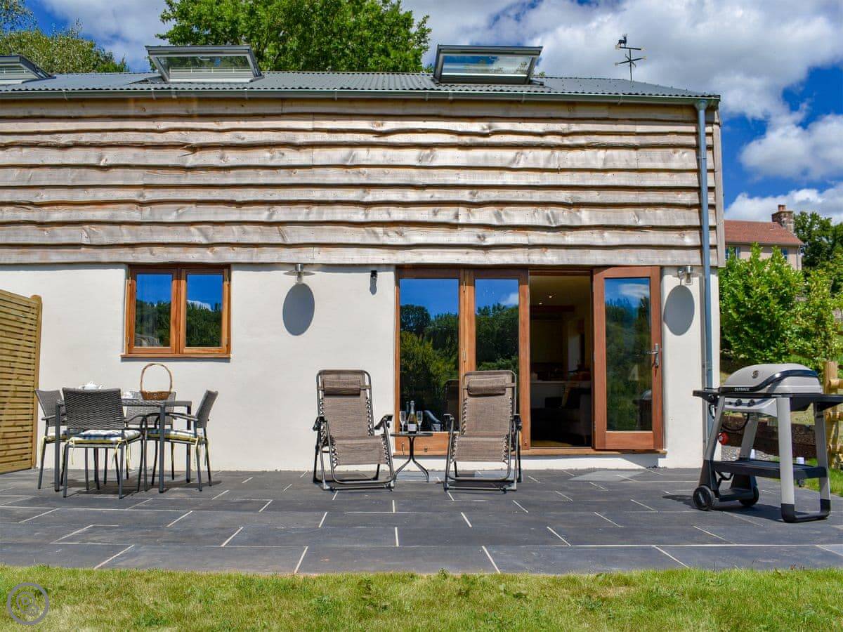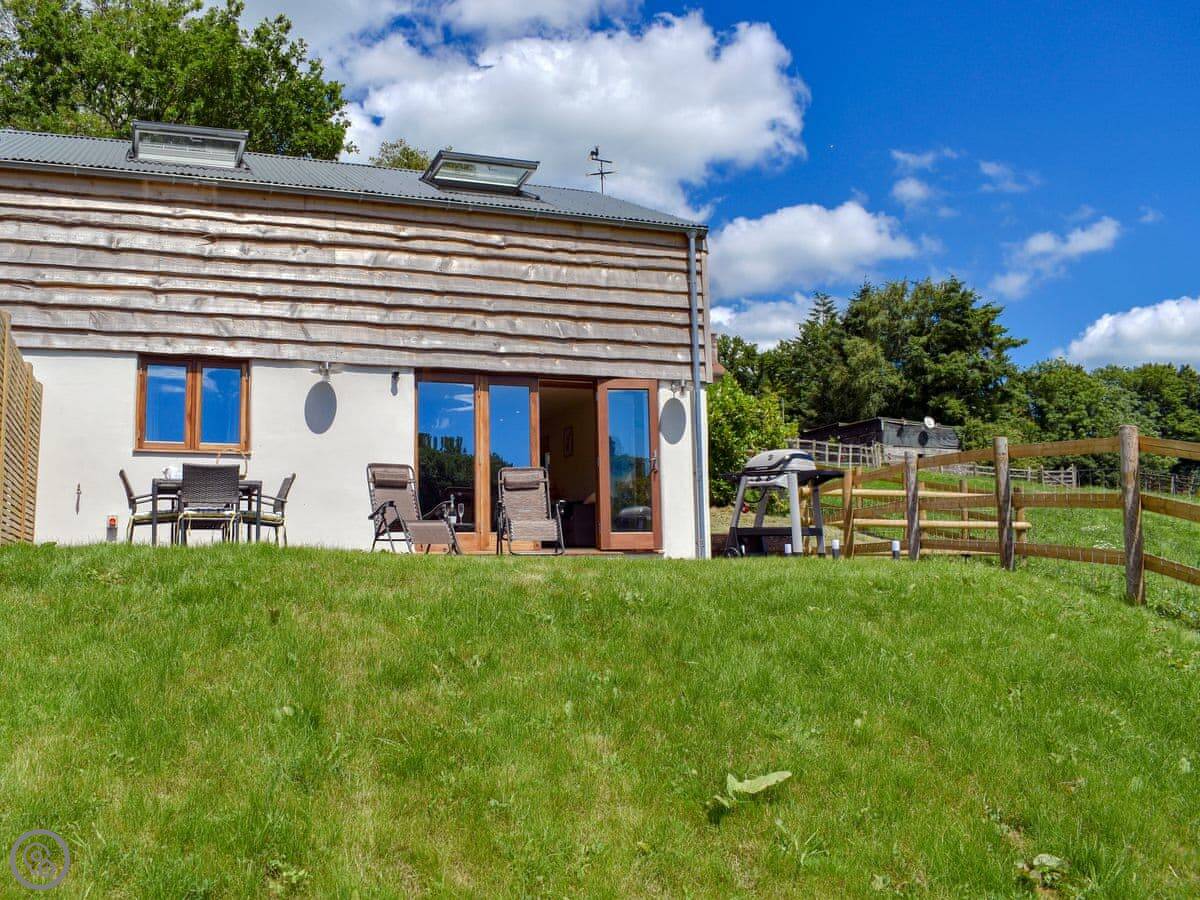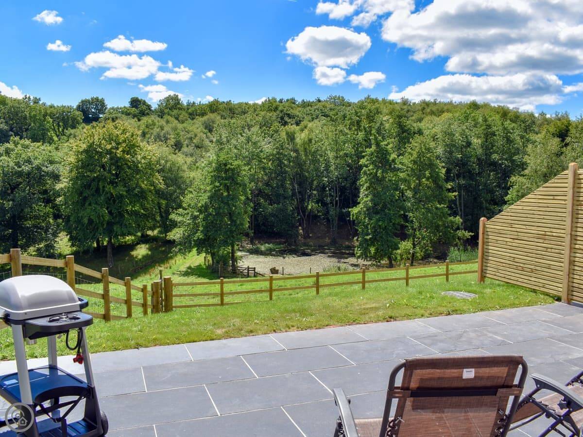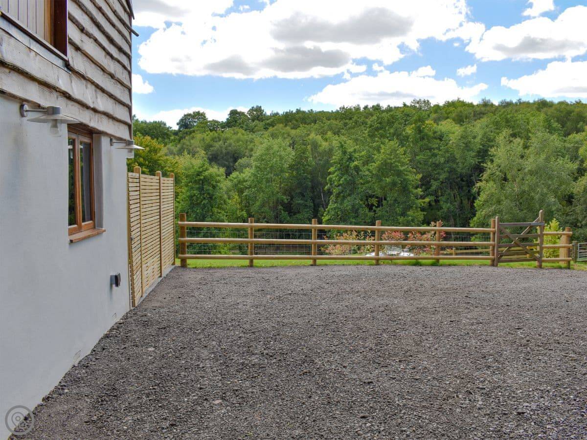 You have your own patio with a barbecue and table. The lawn is shared with the cottage next door, Pheasant. It looks out over a nature pond and some woods. You can bring one dog. They usually like the walks from the door.