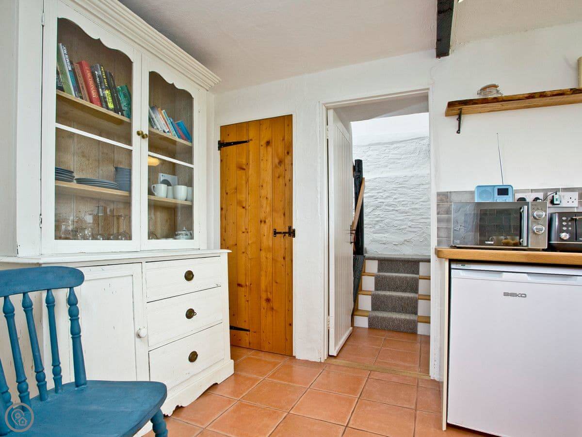 This is the Granary in Looe. It's a converted barn on our land, but it feels separate. It's about 150 yards from Millendreath Beach, which is a small cove with a cafe right on the sand. You can get to the South West Coastal Path from the gate.