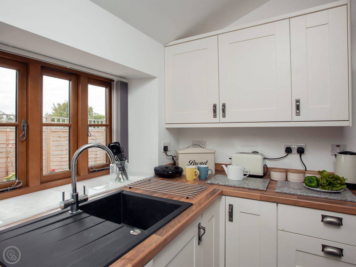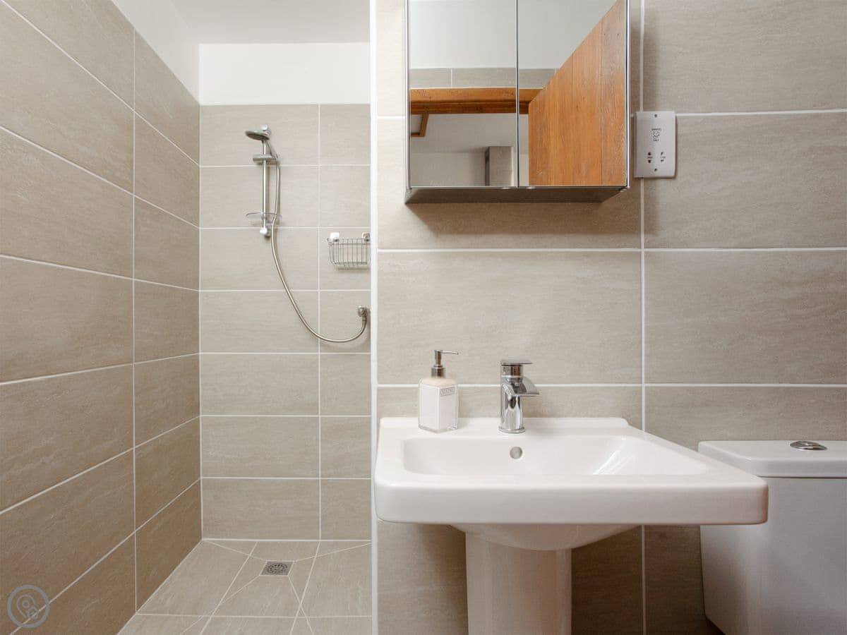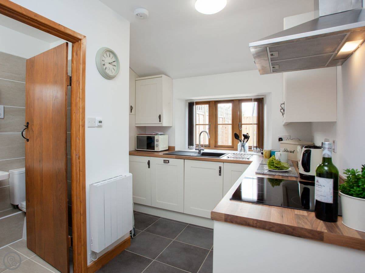 It's comfortable. A good kitchen, a wood burner, and a big bed that splits into singles if you need it. There's a walk-in shower on the ground floor, and the front door is wide enough for a wheelchair. The garden's enclosed, which is handy even if it's small.