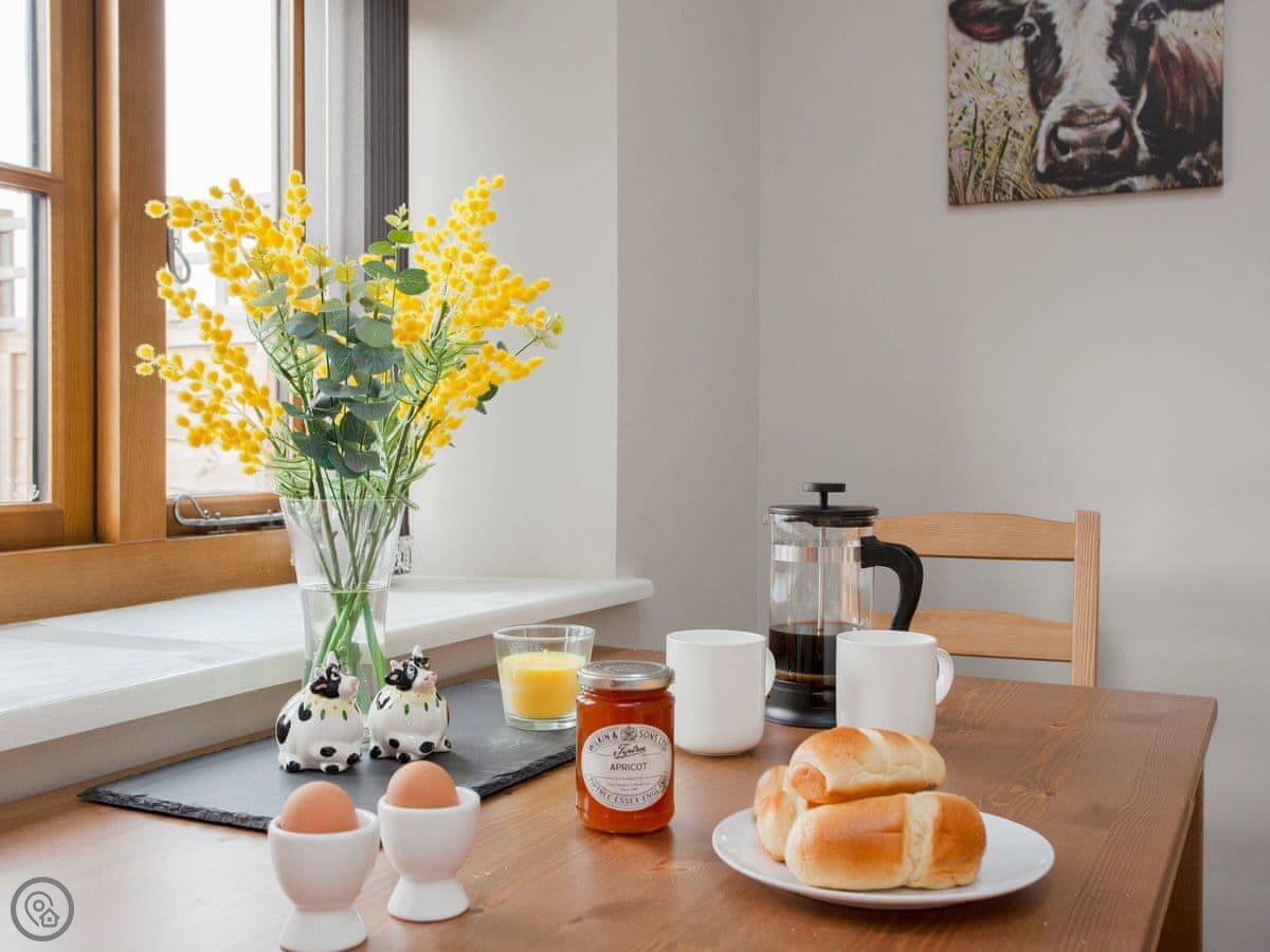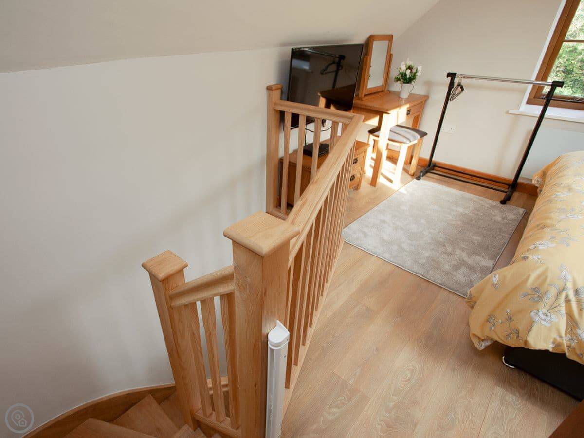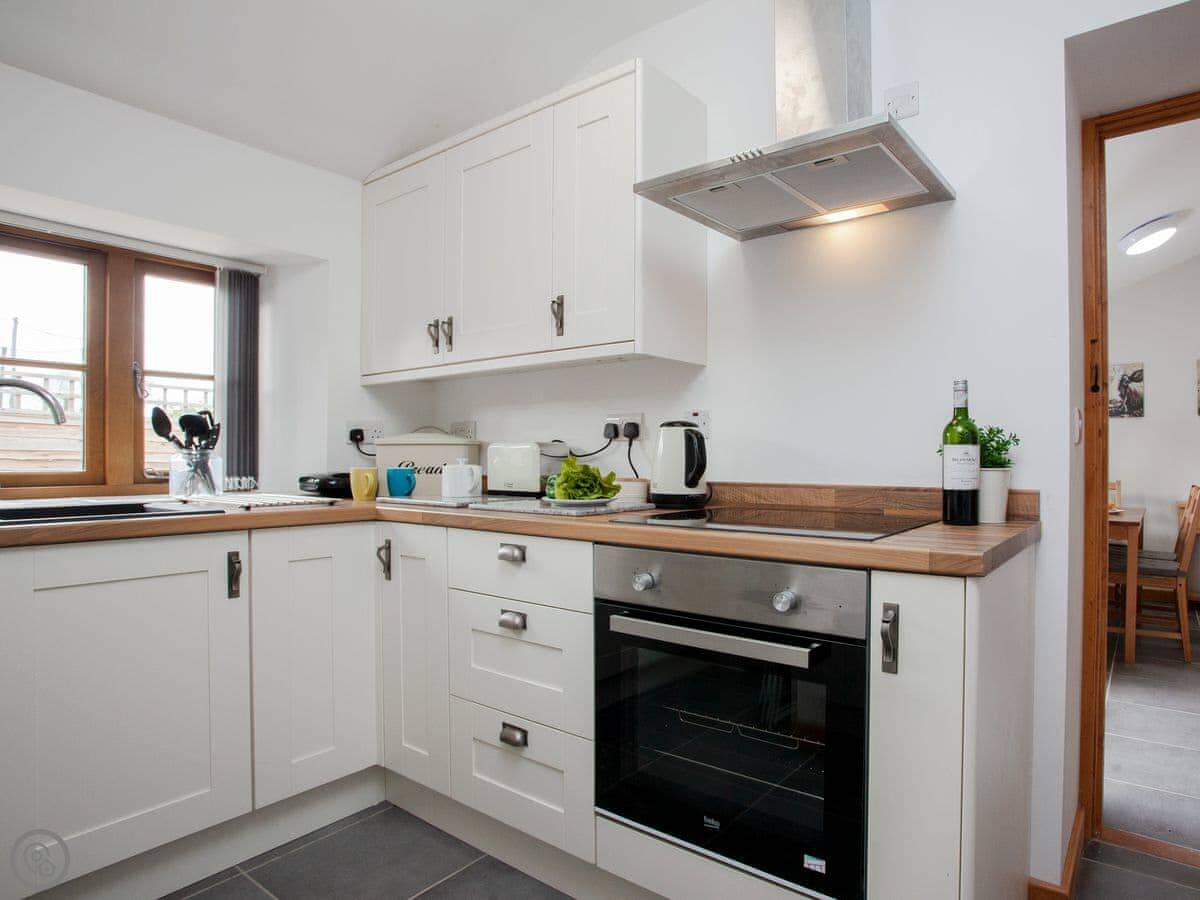 It's comfortable. A good kitchen, a wood burner, and a big bed that splits into singles if you need it. There's a walk-in shower on the ground floor, and the front door is wide enough for a wheelchair. The garden's enclosed, which is handy even if it's small.