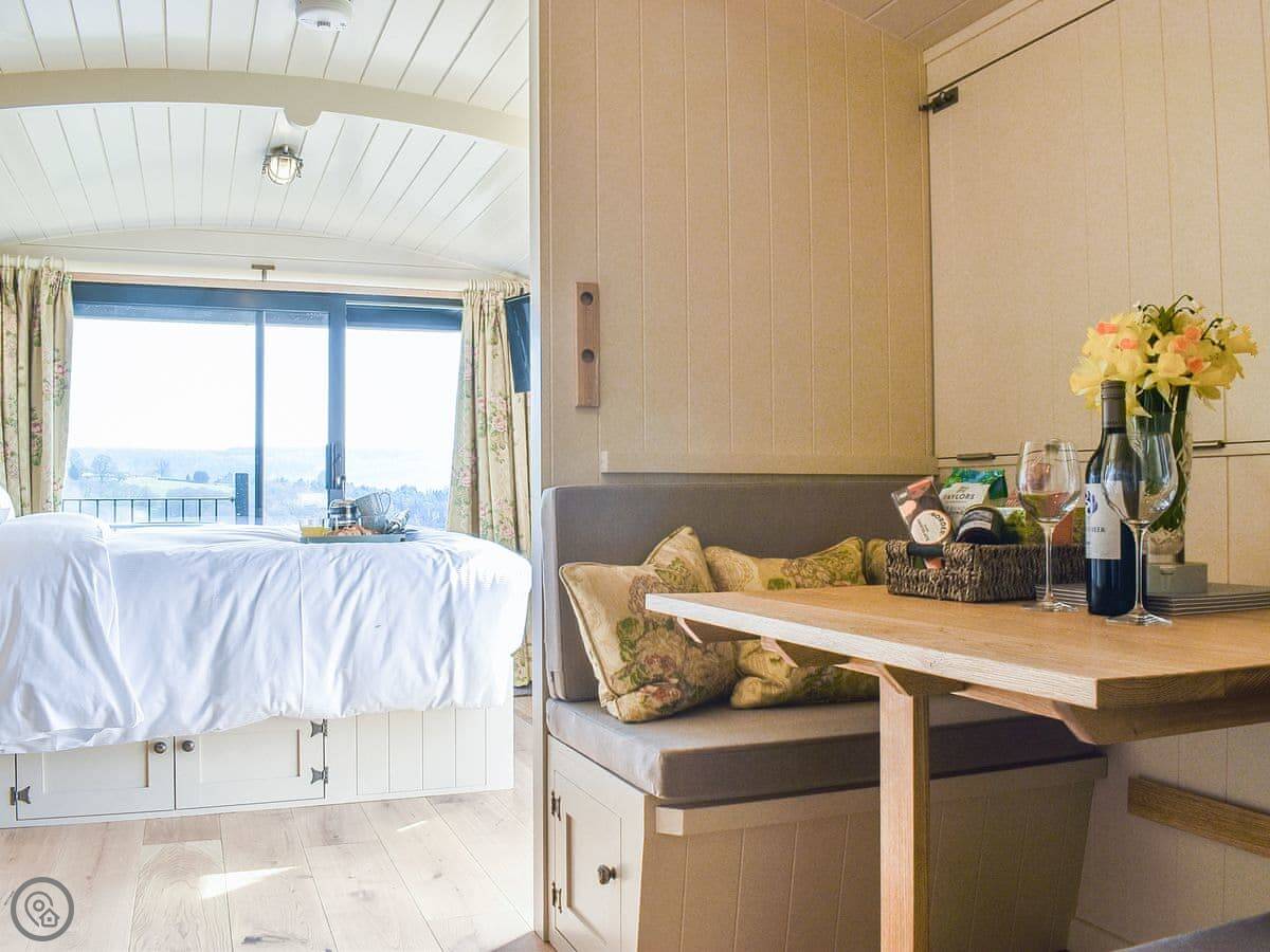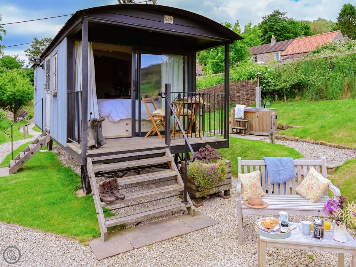 The Dreamer's Hut is on our land near Hawnby, in the North York Moors. It's a proper shepherd's hut, all on its own. It sleeps two in one room.