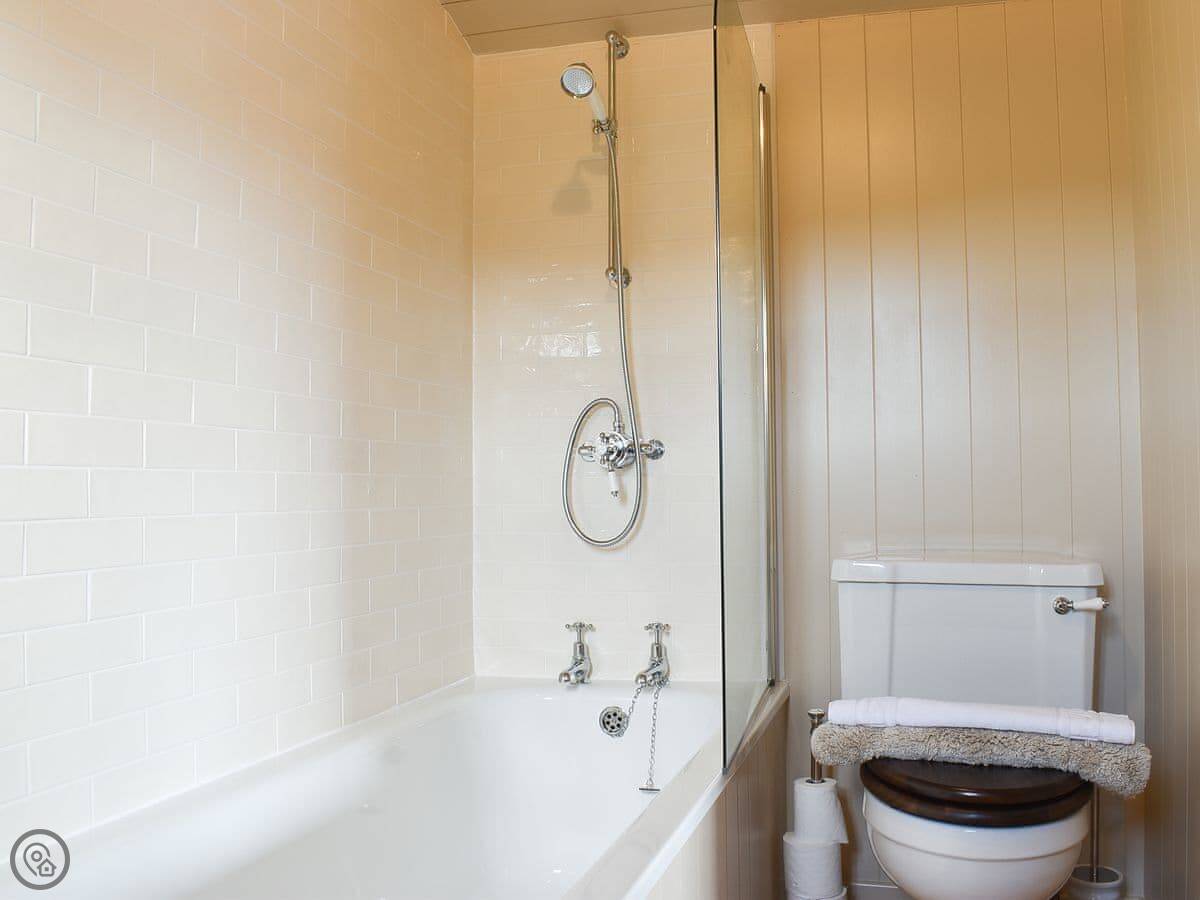 It's got a 4 Star rating, which means it's done up well. Everything's new. There's a kingsize bed, a small kitchen that works, and a bathroom. You can have a shower or use the bath, which is outside under a cover. You light a fire underneath it to heat the water. It's a bit different. You get a good view of the stars from there.