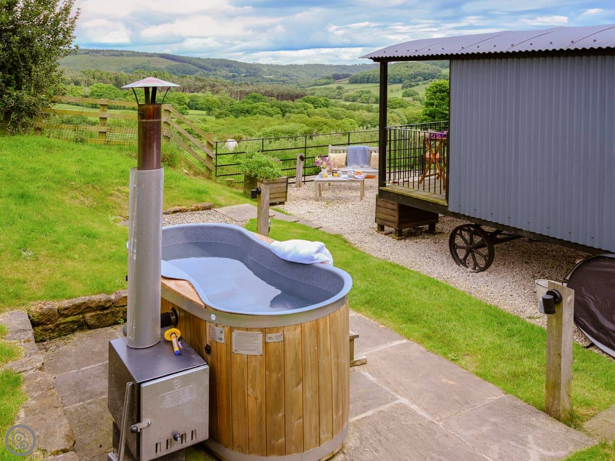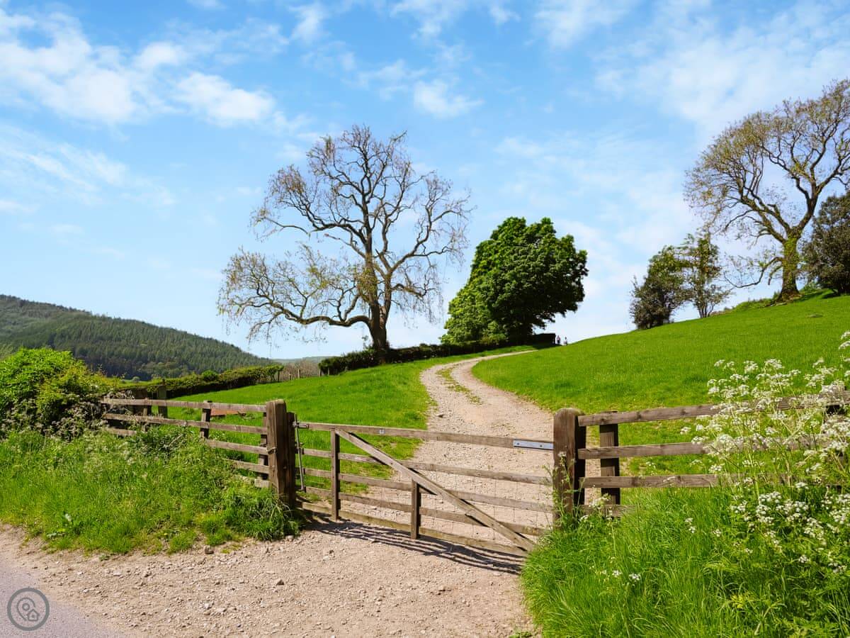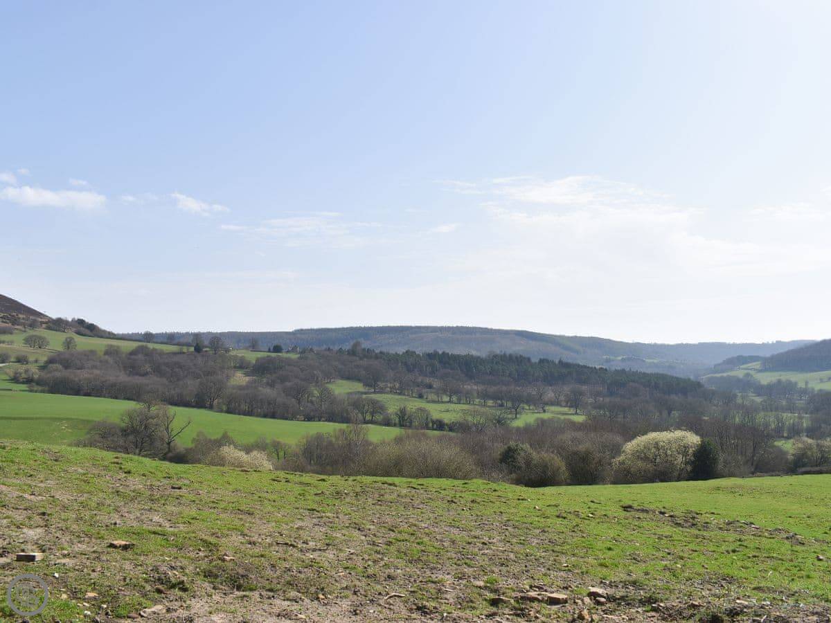 Hawnby village is a walk up the hill, about ten minutes. The pub is there. It's a proper old stone village. The shop is a bit further, about a mile. It's all walking country. Right from the hut you can get onto footpaths. The Cleveland Way and the Inn Way long-distance paths are close by.