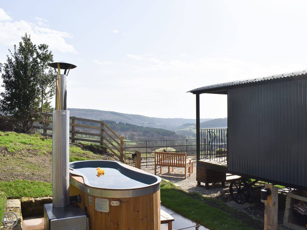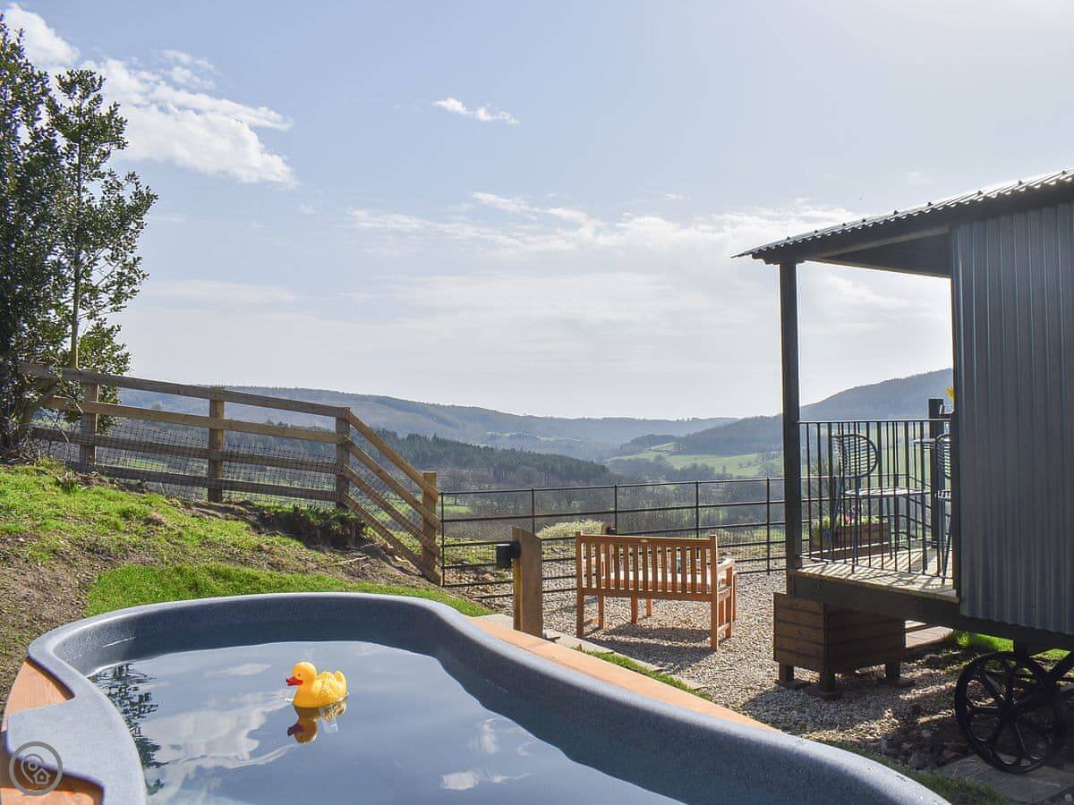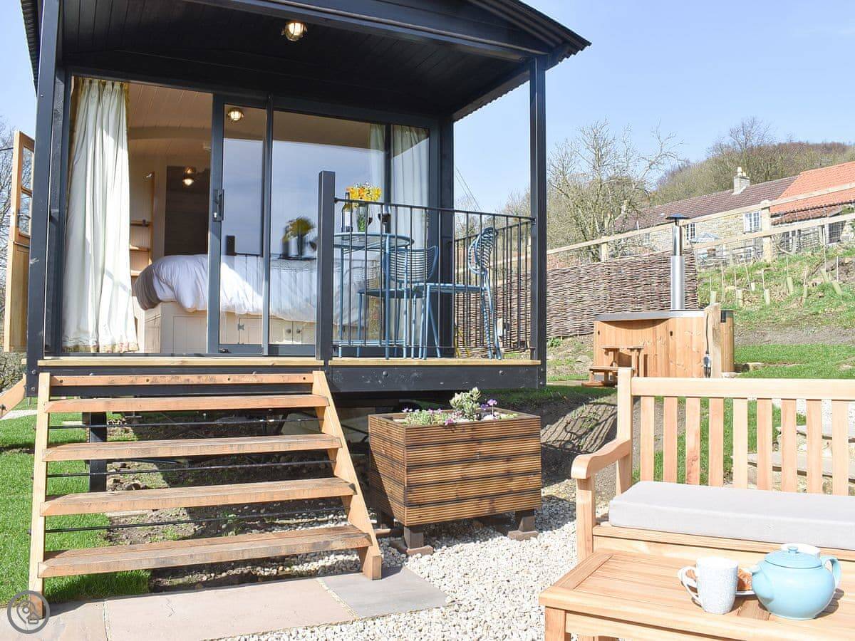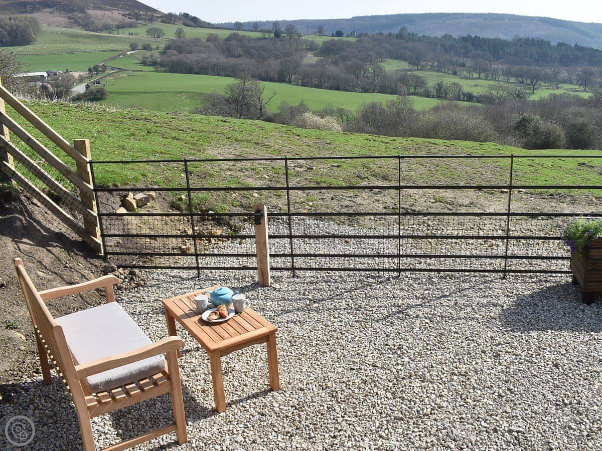 Hawnby village is a walk up the hill, about ten minutes. The pub is there. It's a proper old stone village. The shop is a bit further, about a mile. It's all walking country. Right from the hut you can get onto footpaths. The Cleveland Way and the Inn Way long-distance paths are close by.