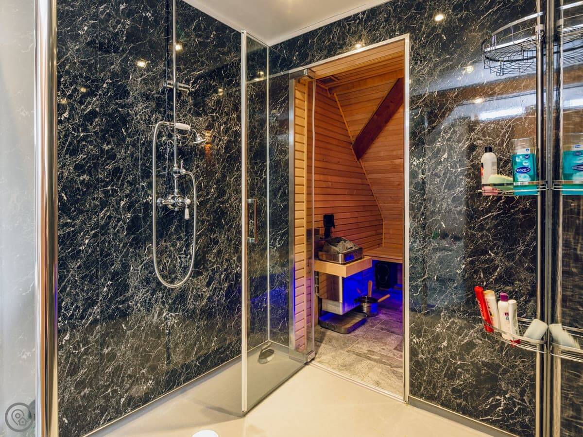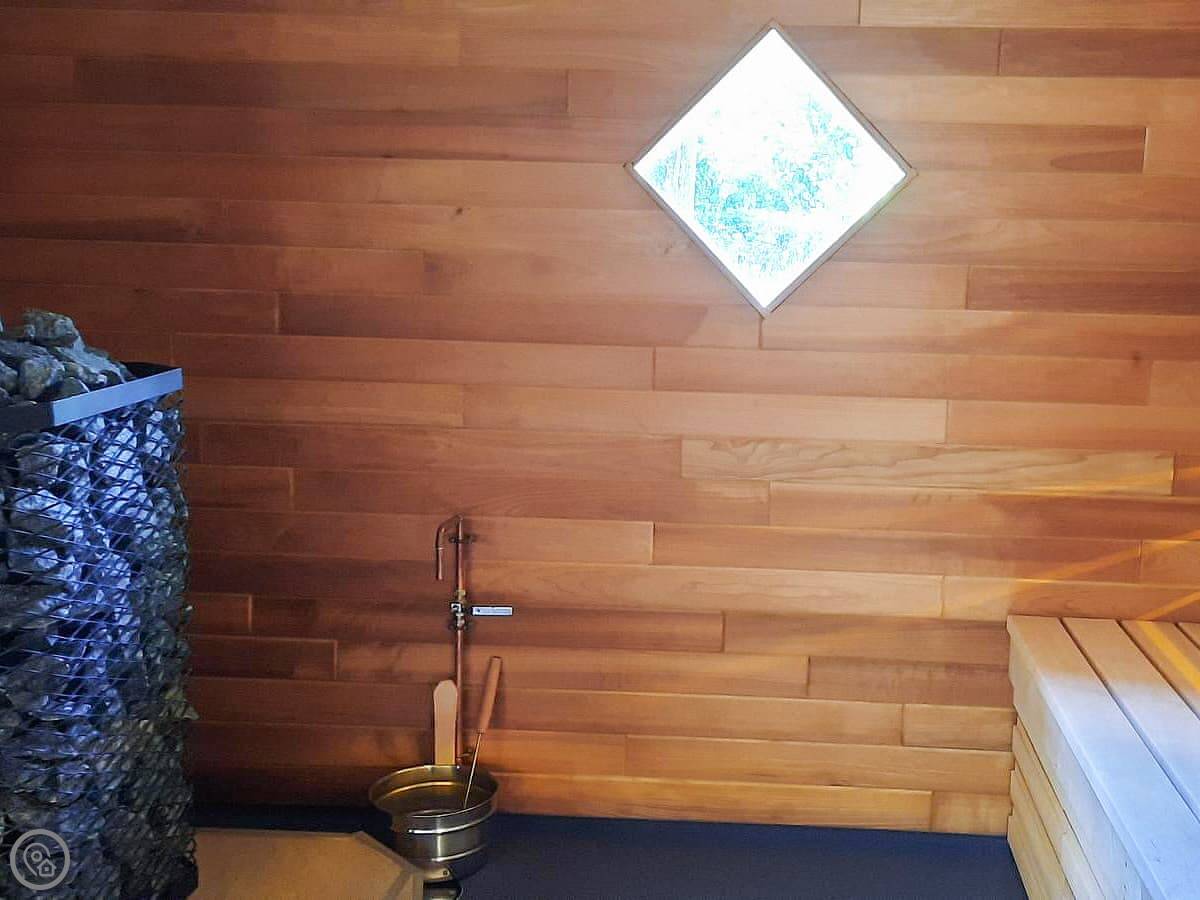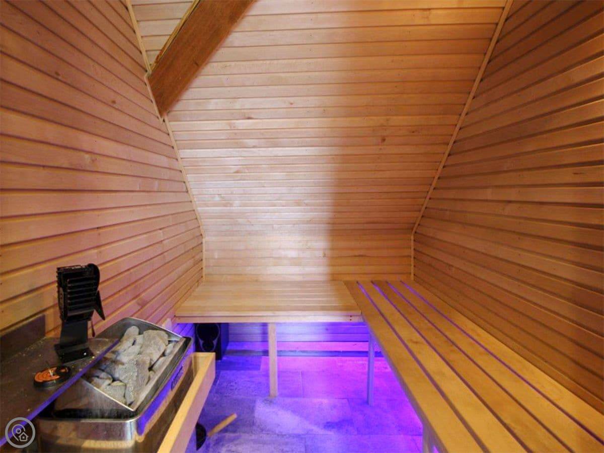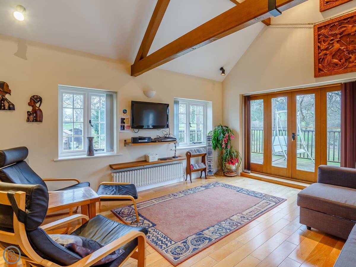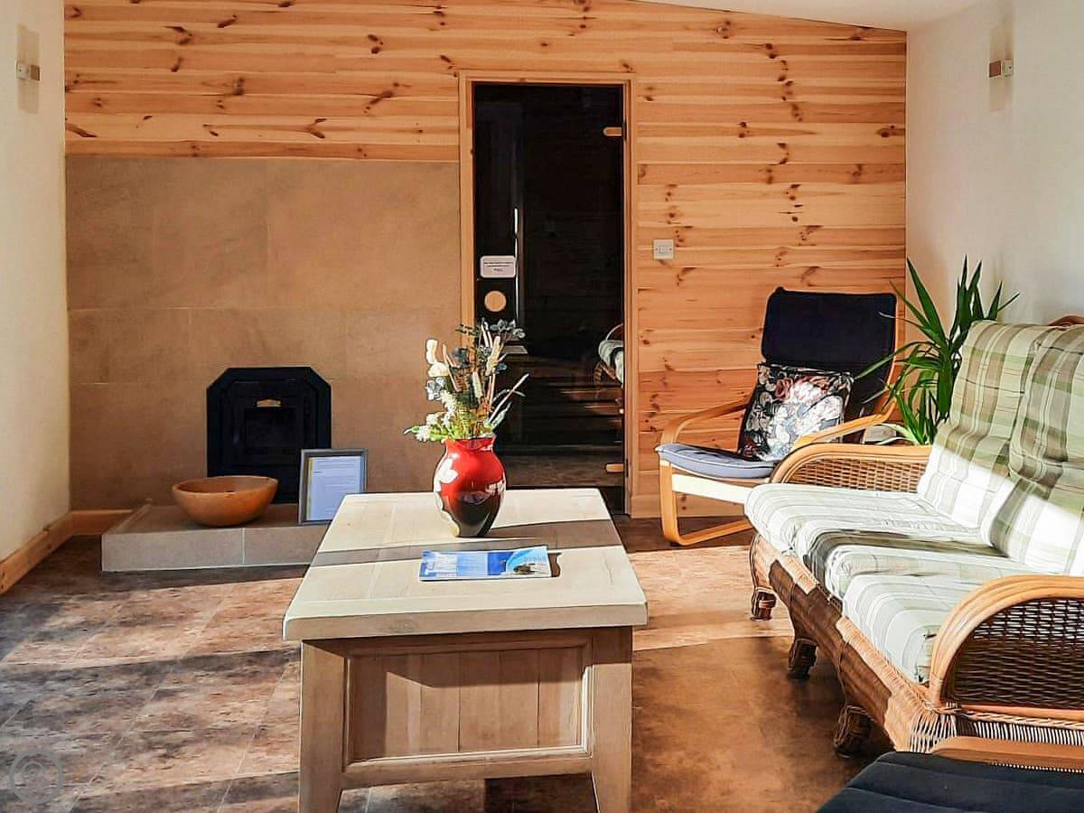 Attached to the property is a garage and above the garage is a spectacular studio flat. The studio comprises of living room/kitchen area with 55" Smart TV and double sofa bed. Through the oak door there is a wet room which has a walk-in rain shower, and a Finnish sauna room with built in stereo system. The sauna can cater for up to four people. Shop, pub and restaurant 1½ miles.