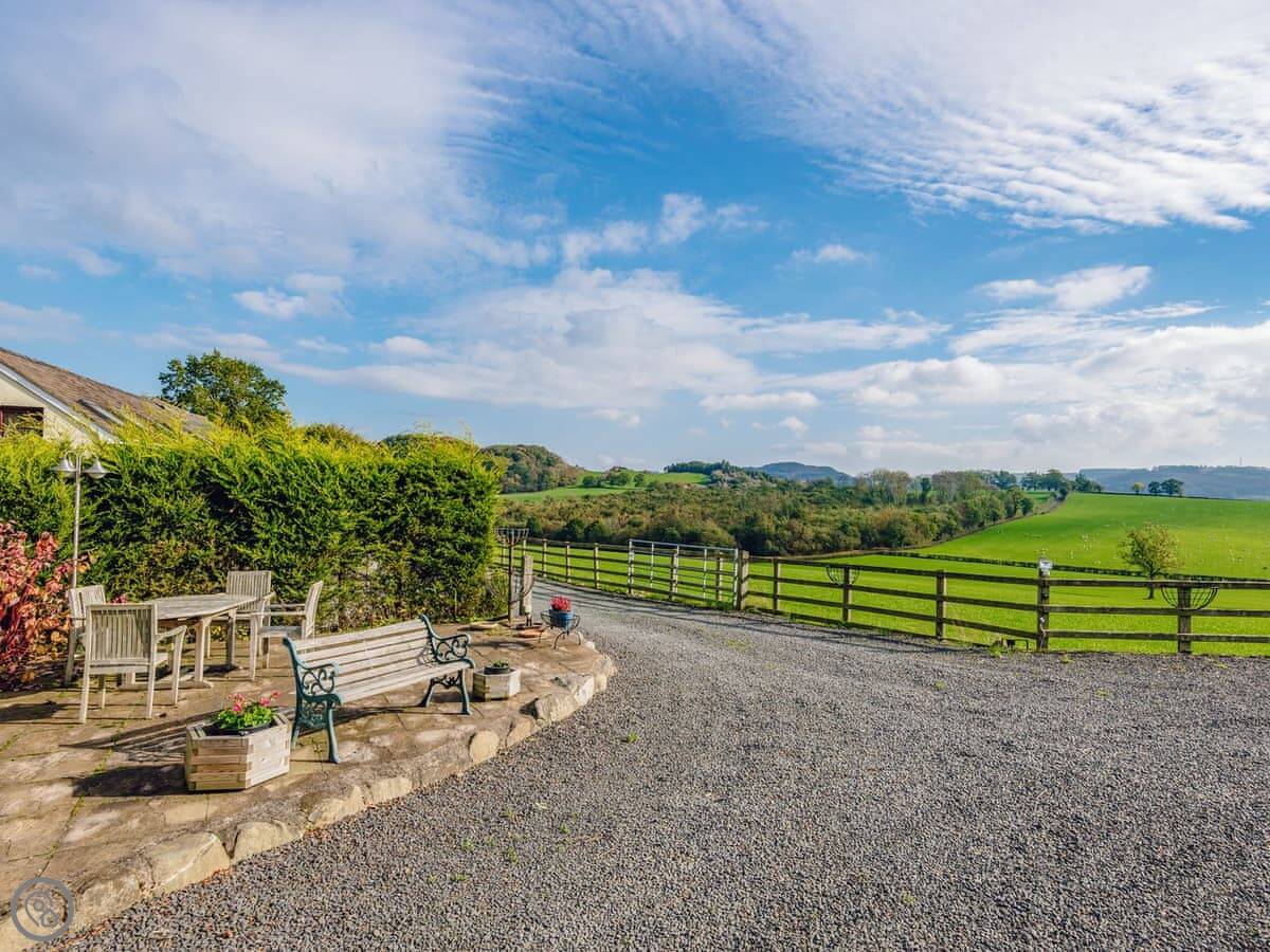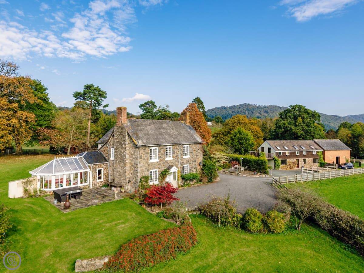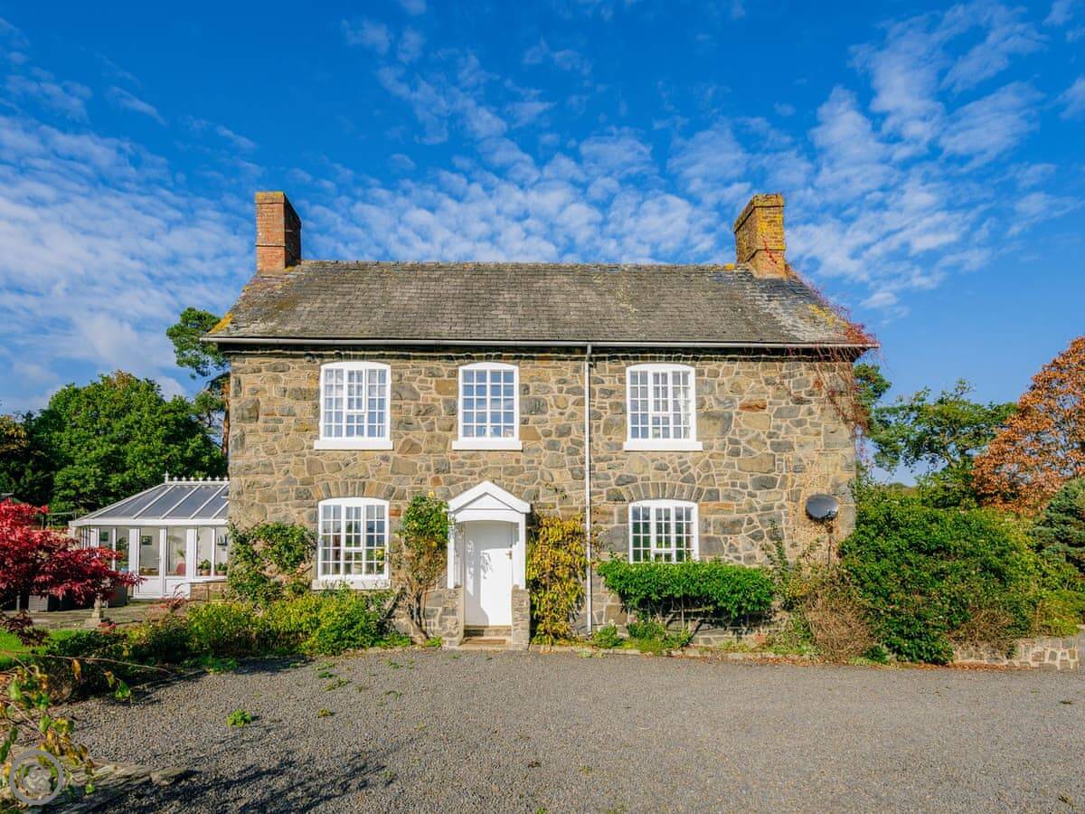 This traditional, detached Welsh farmhouse is at least 200 years old and is accessed via a gravelled inclined track. It is situated high on the gentle rolling Welsh hills overlooking the Vyrnwy valley. Within a mile of the property is Owen Glyndwrs Way, and there are many leisurely walks through the unspoilt countryside. There are lovely countryside views from every aspect and delightful villages and towns are not too far away. The south facing house has been extended gradually since 1985 yet retains its family farmhouse character and traditional feel. There are grounds surrounding the property and after a busy day exploring the surrounding countryside guests can relax on the private patio looking at the stunning views and enjoying the natural swimming pool.
