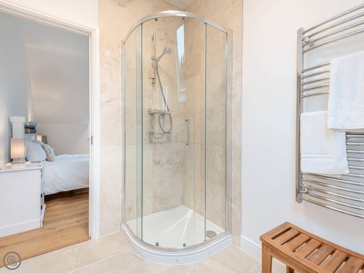 It sleeps four in two king-size bedrooms. One bedroom has its own shower room, and there's a main bathroom too. The sofa in the living room pulls out into a double bed if you really need it for extra people. It's a 4 Star place, so it's done up nicely. Everything feels new and clean.