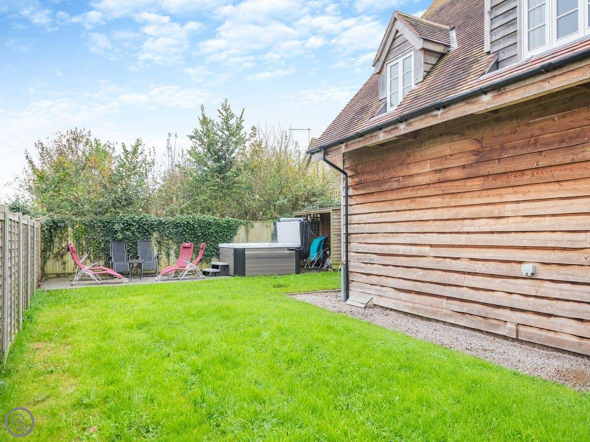 The New Inn Barn is in Marnhull. It's a converted barn, next to the main farmhouse. You get your own garden at the back, and there's a bigger shared meadow out the front. The garden is enclosed and has a hot tub.