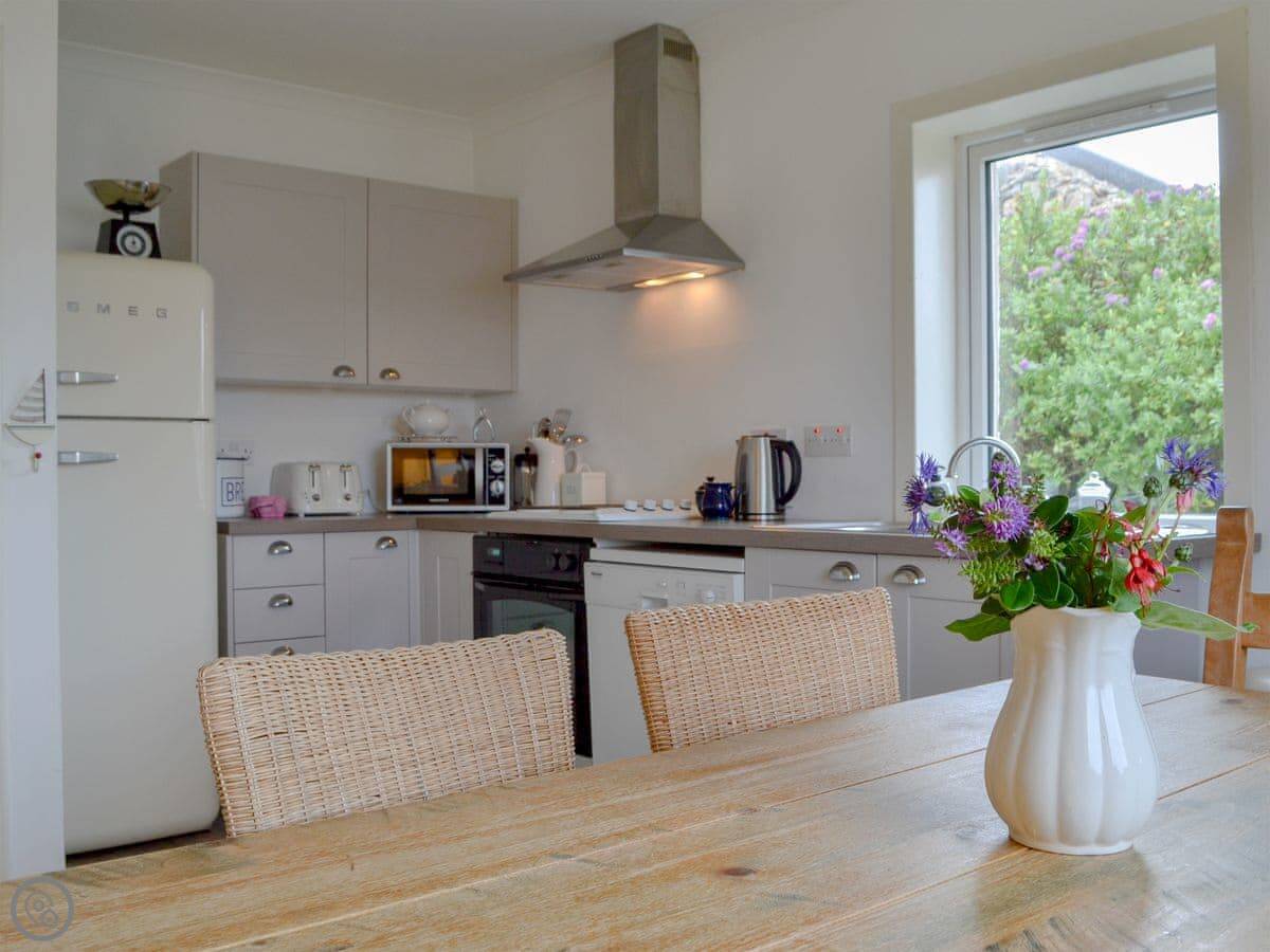 Facilities: it's got a woodburning stove, dishwasher, washing machine, WiFi, and TV. Bedding and towels are included. Parking for two cars. You can bring up to two dogs.