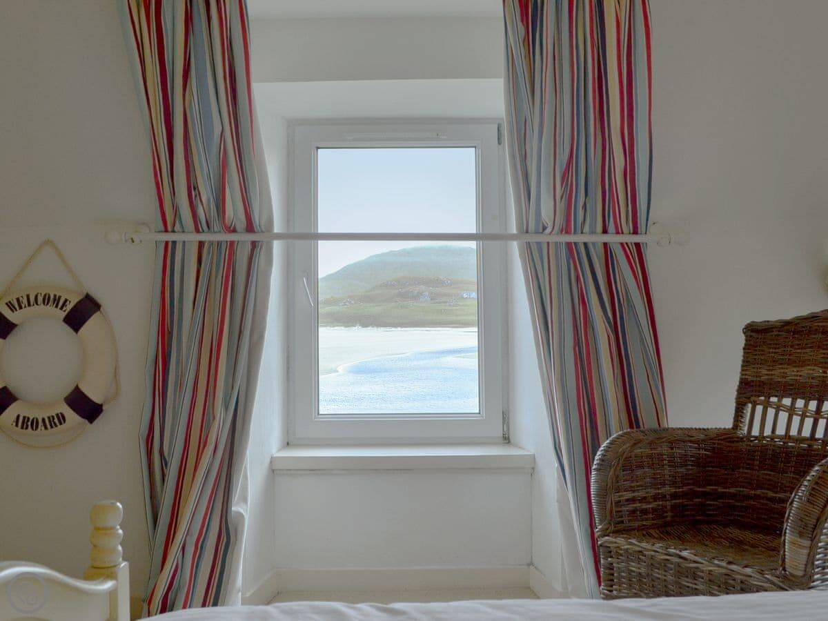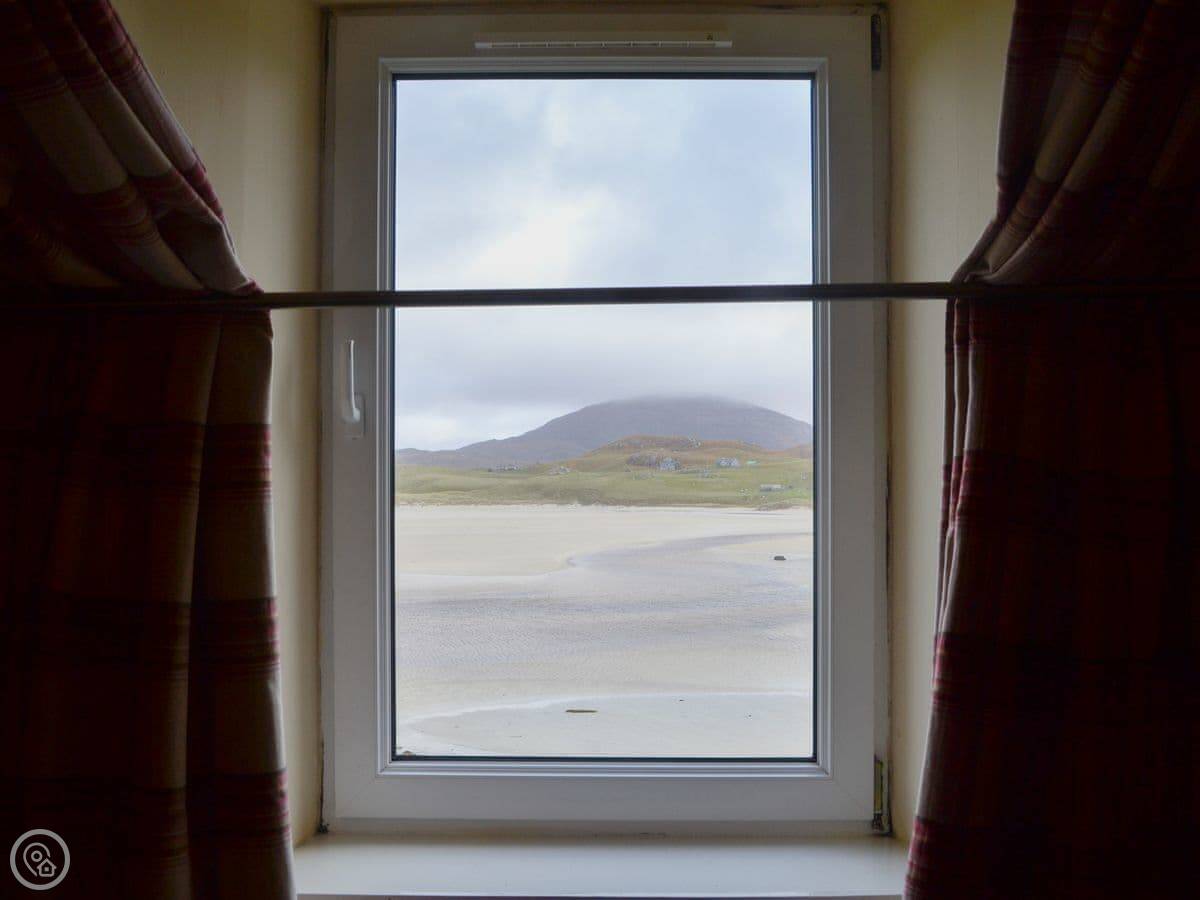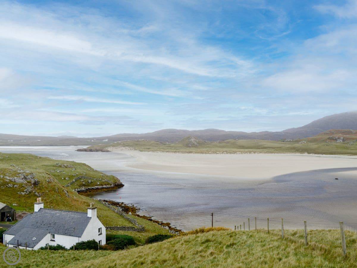 Carnish Lodge is in Carnais on the Isle of Lewis. It's a detached croft house. The main thing is the view. It's set back above Uig Bay, so you look straight out over the dunes and the beach. The light changes all day.