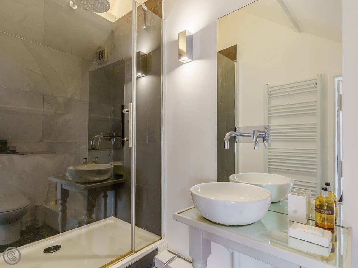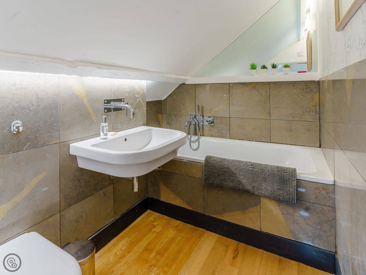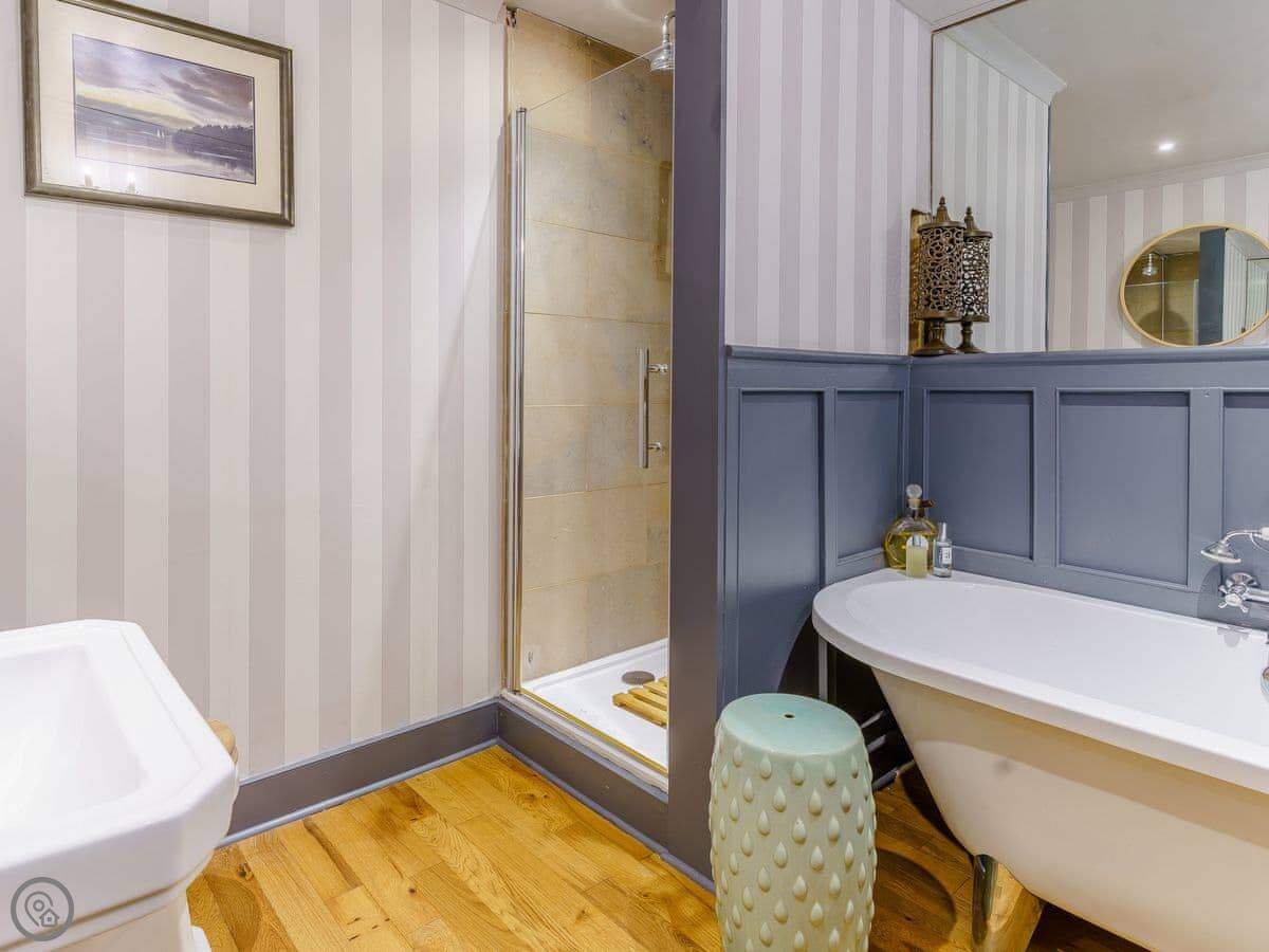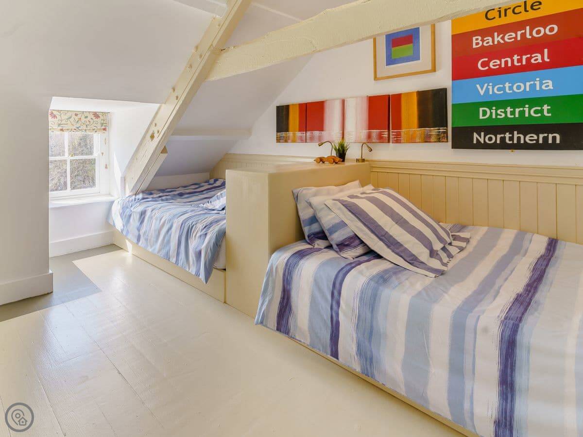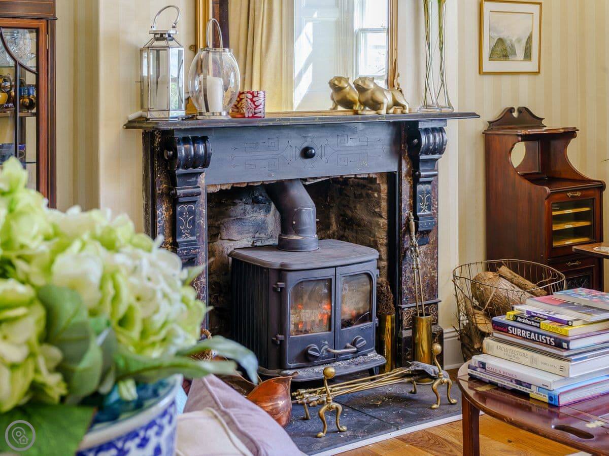 It's old, so the floors aren't all level. The stairs are fine, but they're the original ones. Some rooms have stone walls and old slate floors. There's a wood burner in the snug for cool evenings.