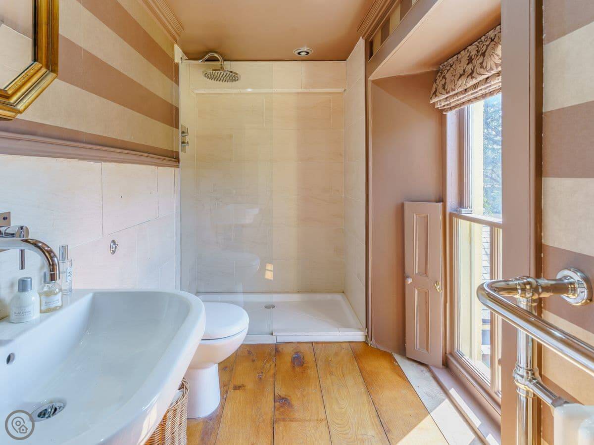 The Old Vicarage is in Laugharne. It's a big Georgian house, Grade II listed, right in the town. It sleeps ten, has five bedrooms and six bathrooms. Five of those are en-suite. It's a 5 Star place, so it's well finished.