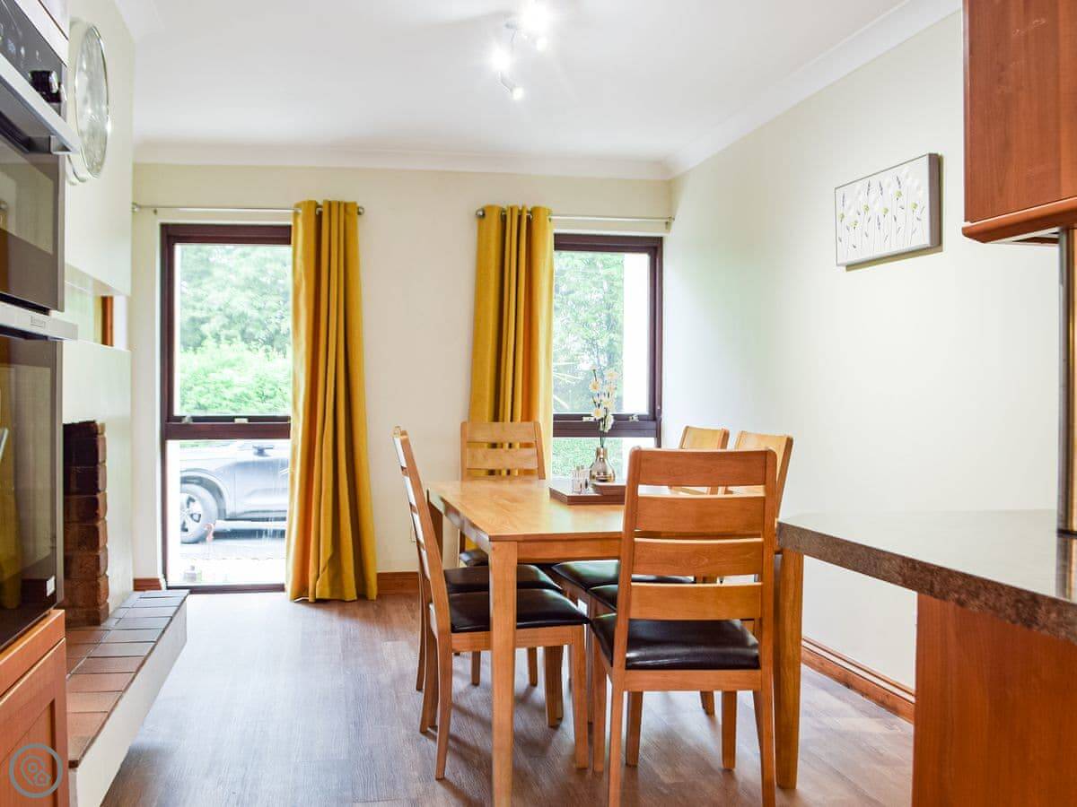 For facilities, it's got what you'd expect. Washing machine, dishwasher, TV, Wi-Fi. Wood burner for the evenings. Bedding and towels are included. There's parking right there. It says wheelchair accessible entrance and there's a cot and highchair if needed. There's no swimming pool on site, but the listing says one is locally available.