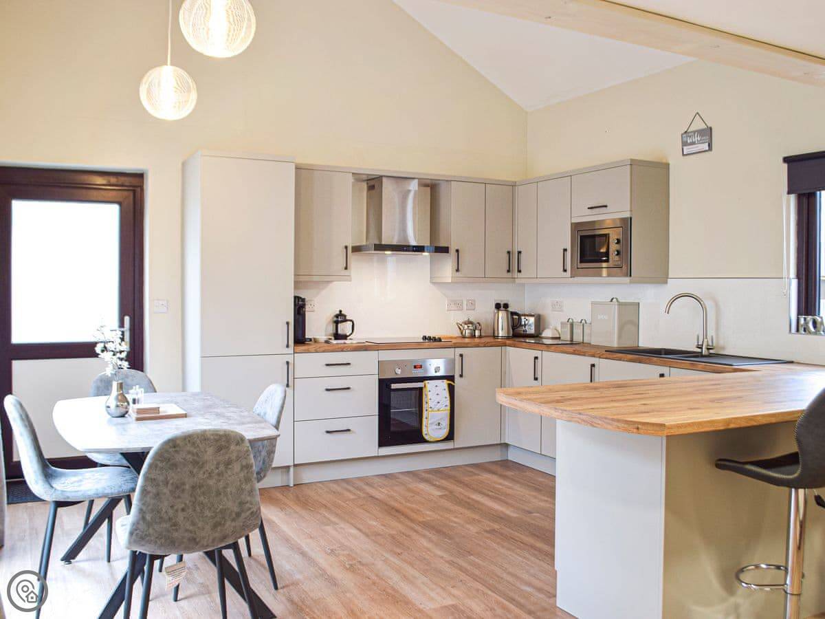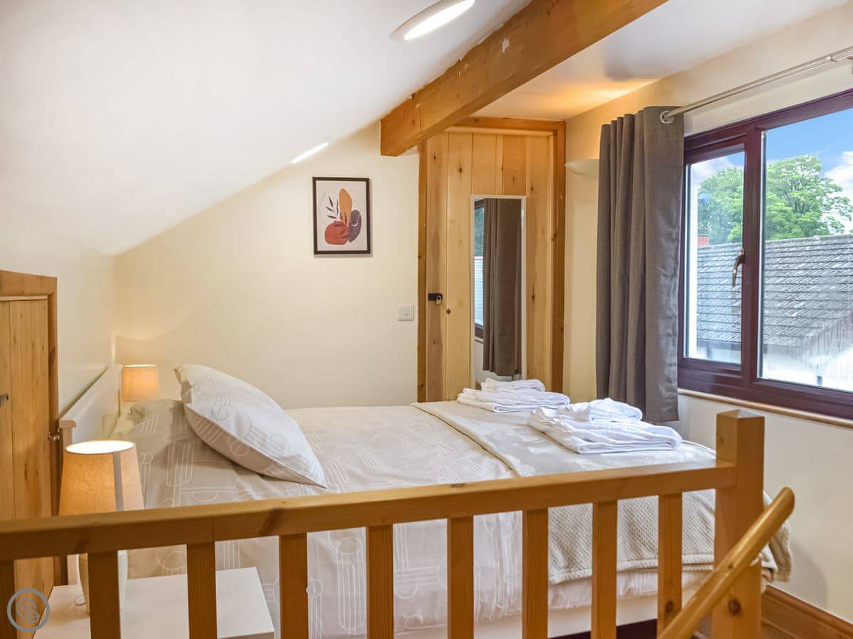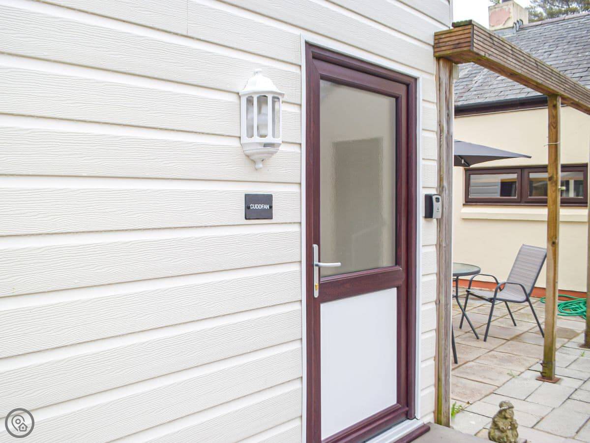 It's one of two cottages here. You have your own garden and a hot tub. One of the bedrooms is on the ground floor, which is handy if stairs are a problem. The shower is a walk-in type.