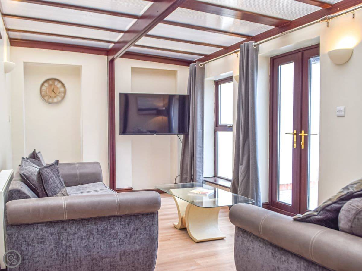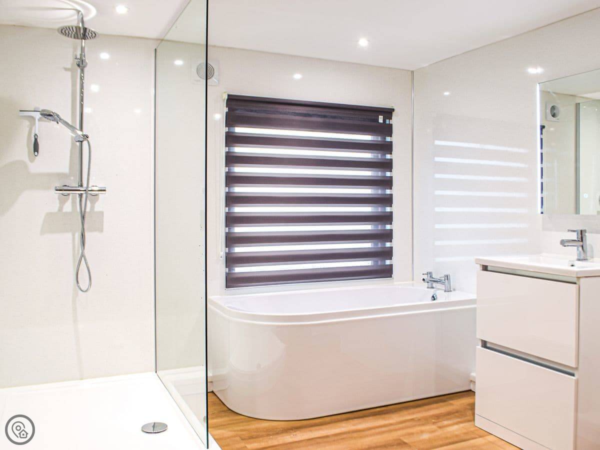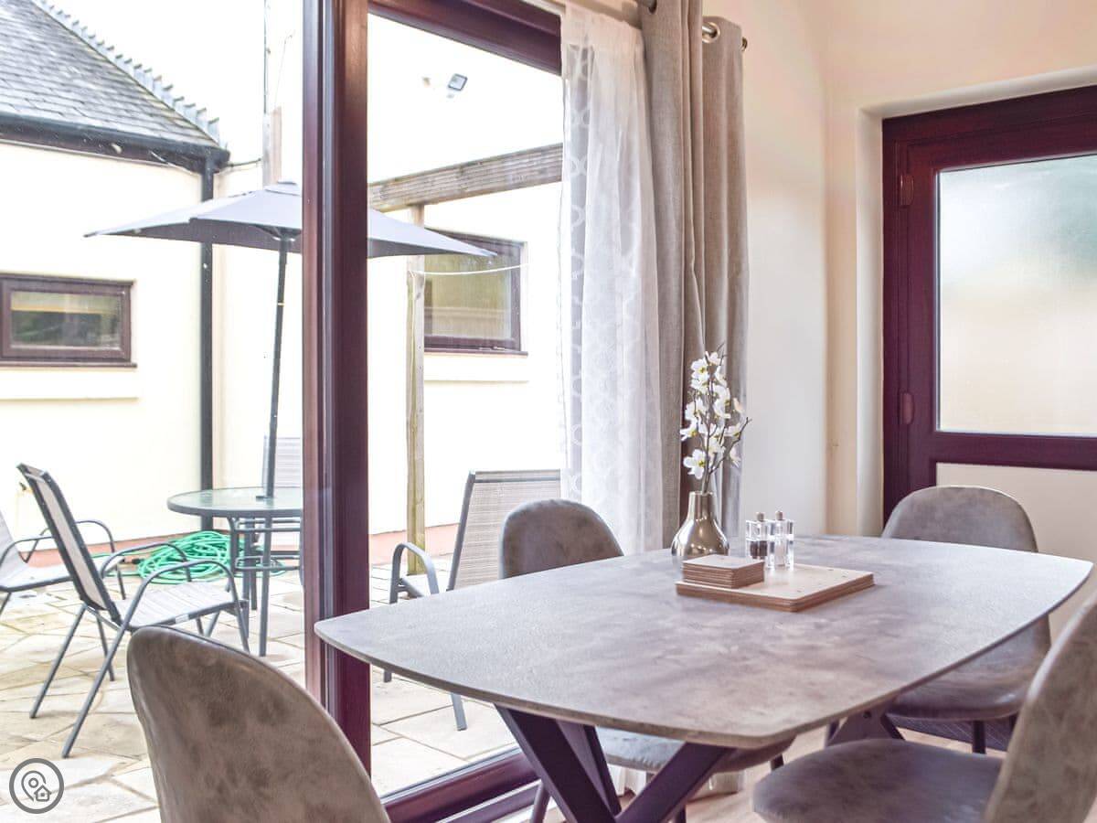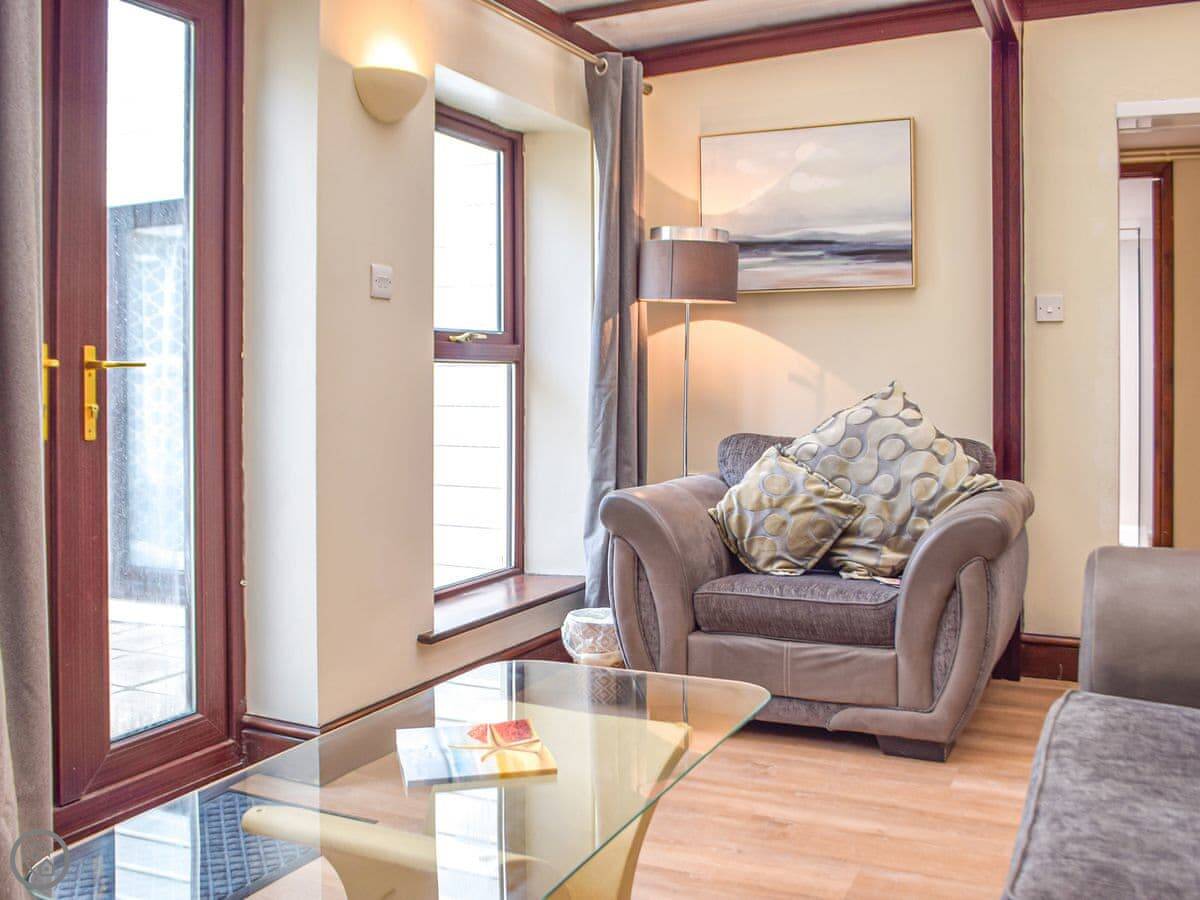 It's one of two cottages here. You have your own garden and a hot tub. One of the bedrooms is on the ground floor, which is handy if stairs are a problem. The shower is a walk-in type.