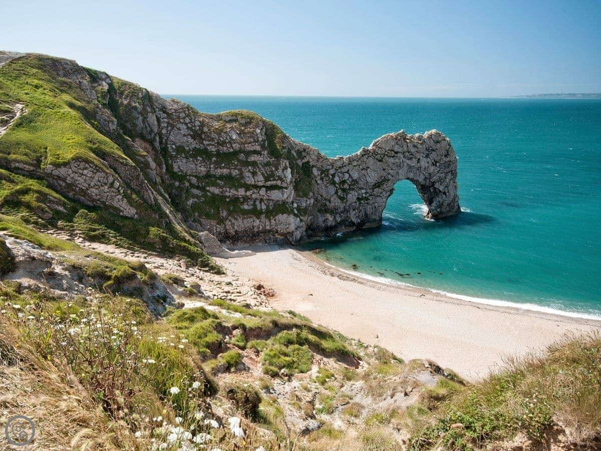 You can walk to Lulworth Cove from the cottage. It's less than a mile. It's a sheltered beach, good for swimming. The South West Coast Path from the cove leads to Durdle Door. That's the famous arch in the sea. It's a proper walk with some steep steps.