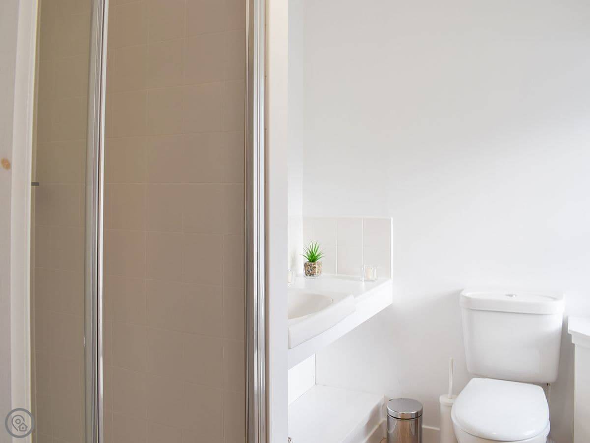 It sleeps six. There are three bedrooms and four bathrooms, which is handy. It's a 4 Star place, so it's comfortable and well looked after. It's detached, with your own garden. Parking is on site.