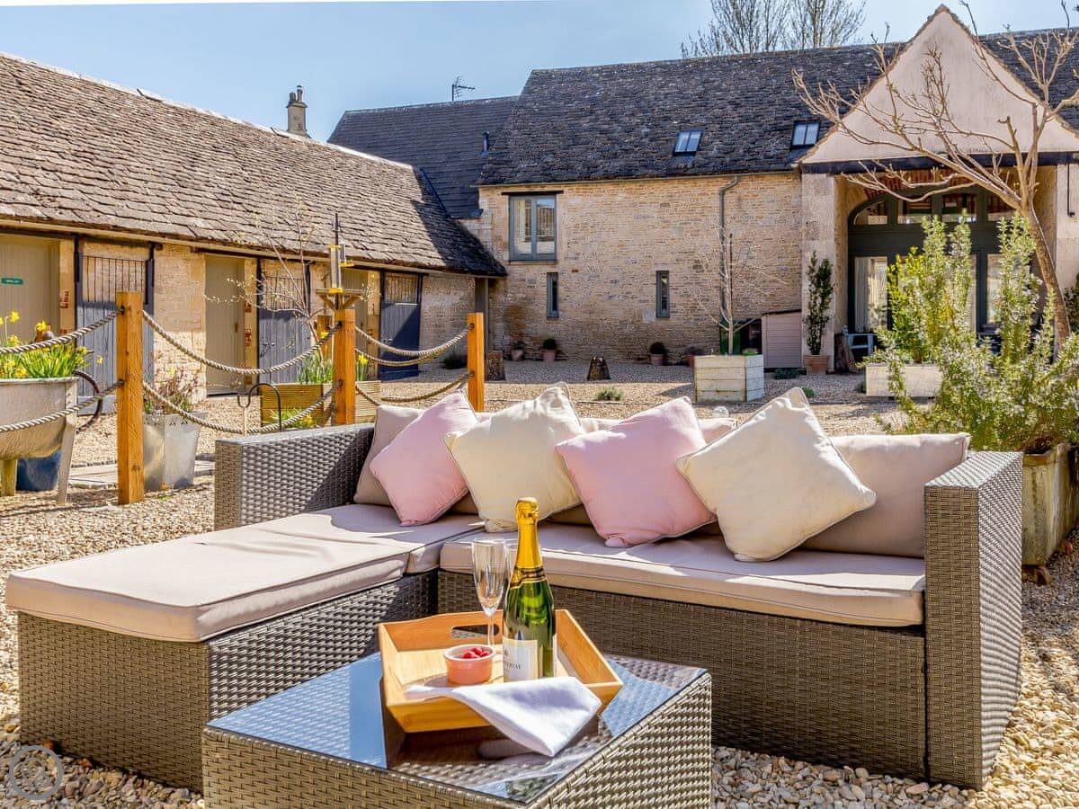 Wool Loft is a barn conversion in Kemble, Gloucestershire. It's in a private courtyard with a few other cottages. You've got your own south-facing outdoor seating area.