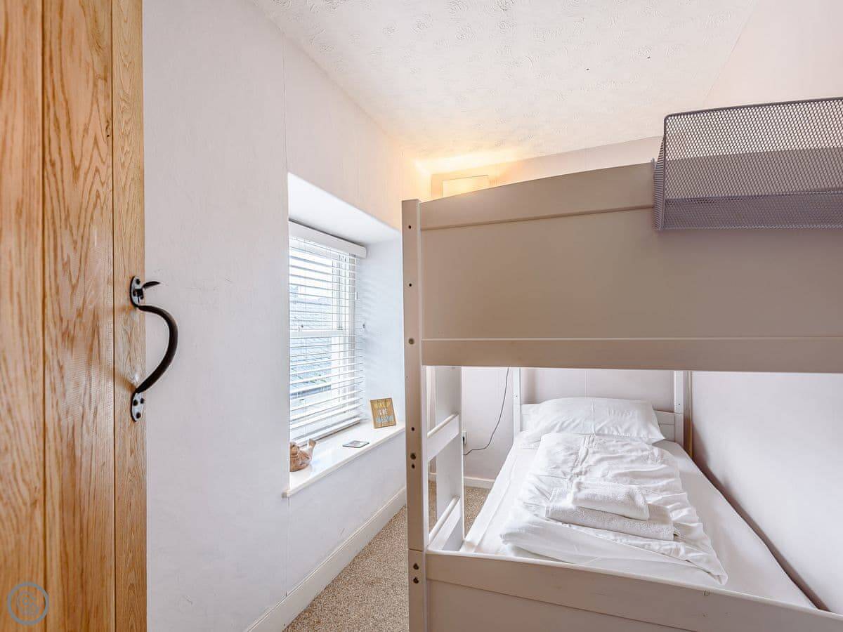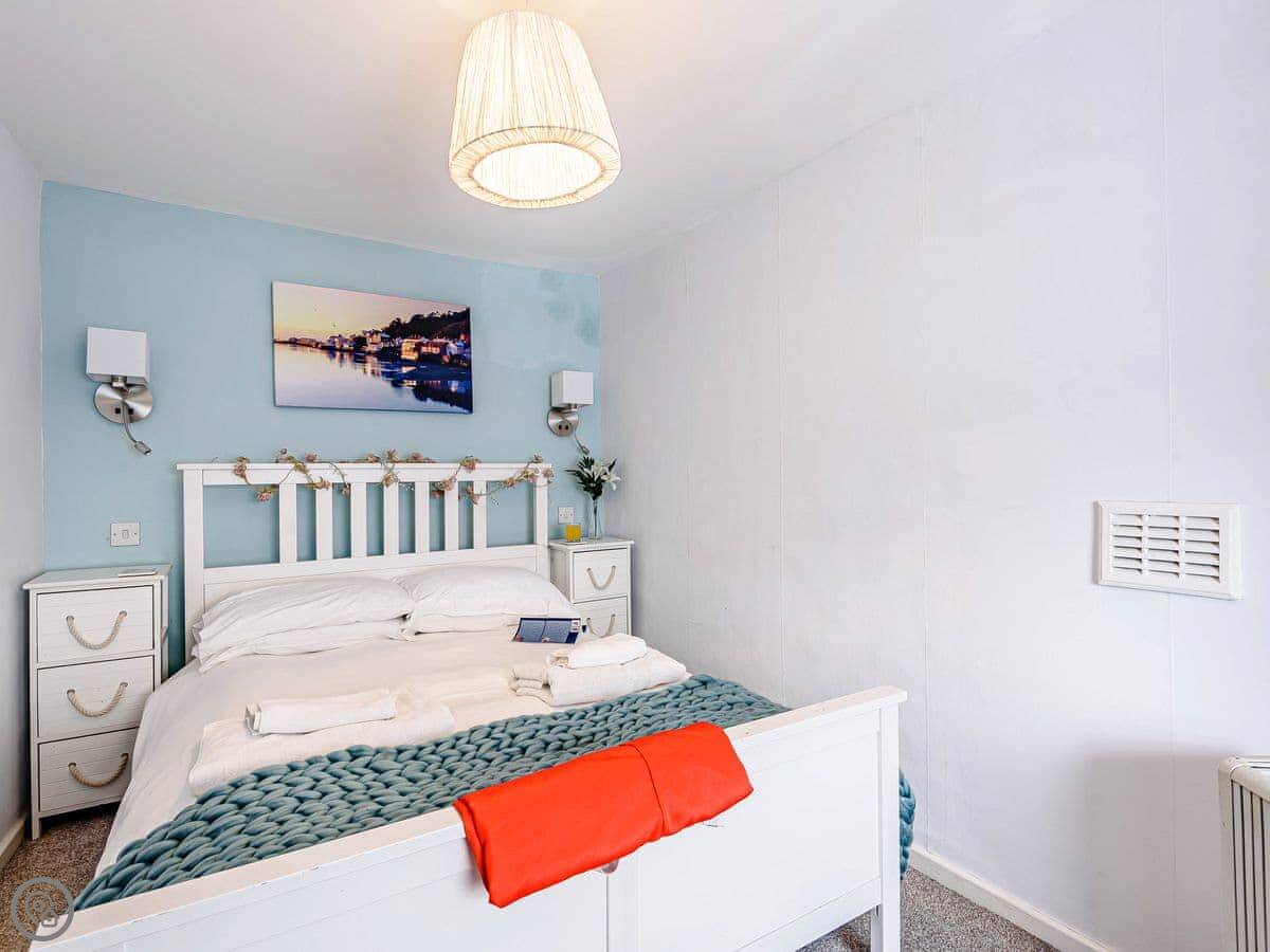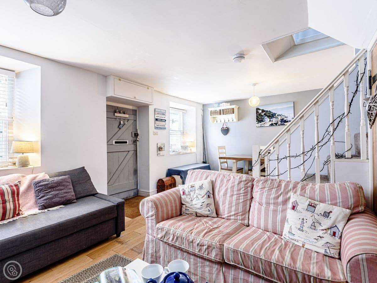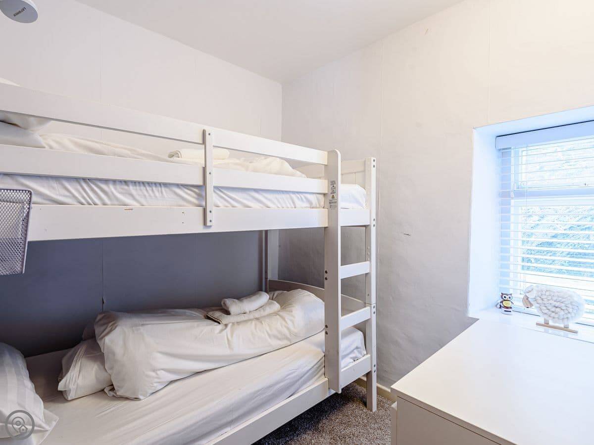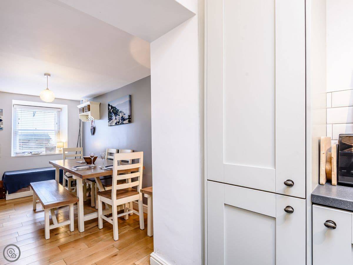 It sleeps six. Three bedrooms, one bathroom. The bathroom is upstairs. It's got a dishwasher and a washing machine. There's a small, enclosed garden out the back with a patio and a barbecue. The stairs are fairly steep.