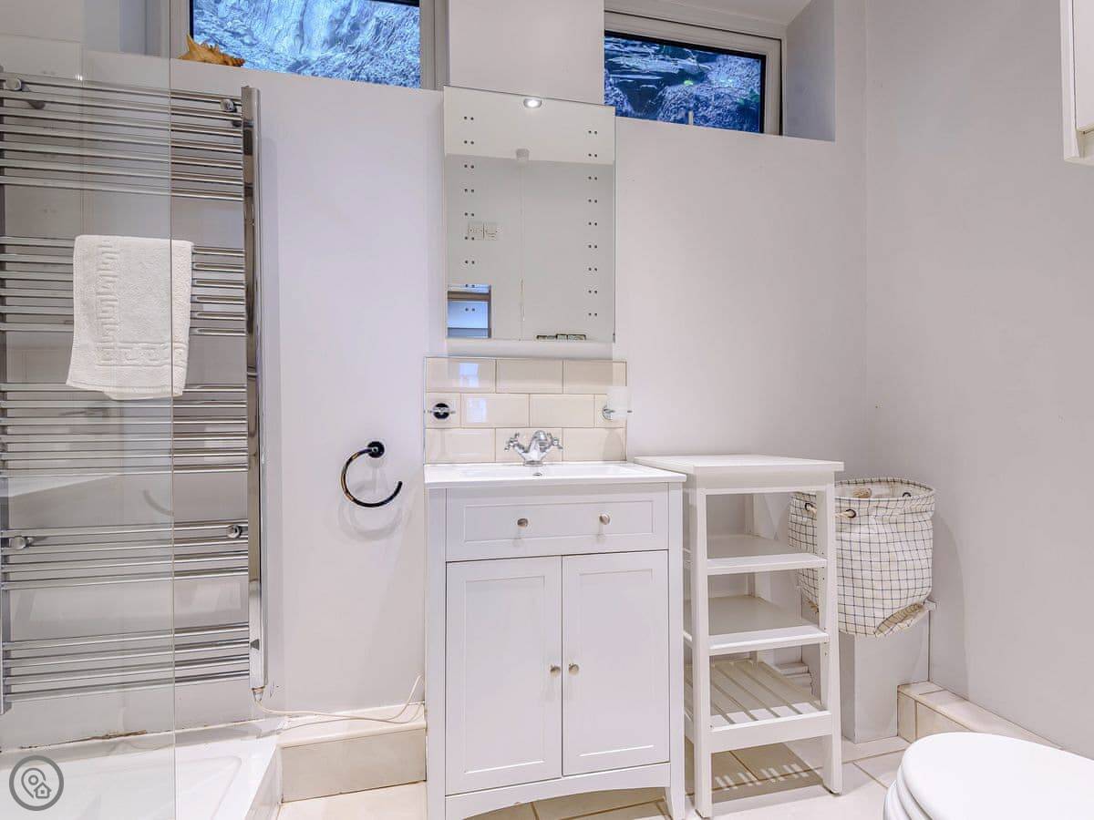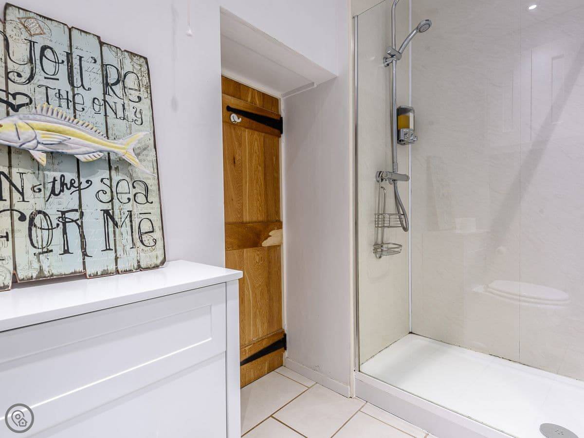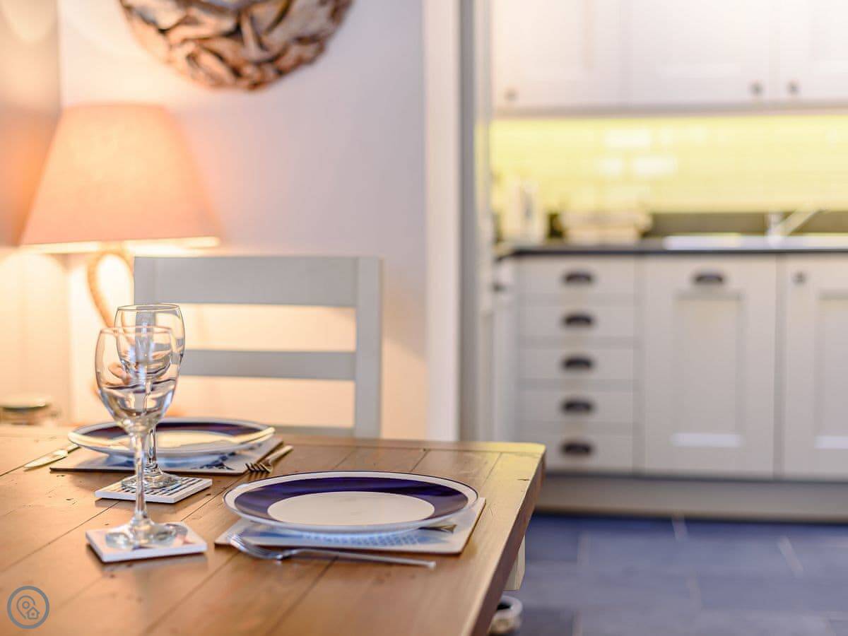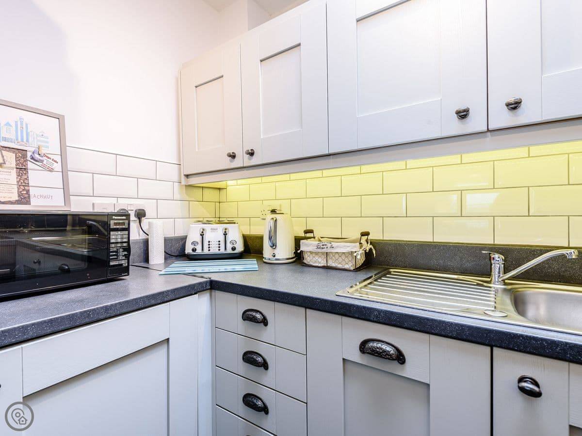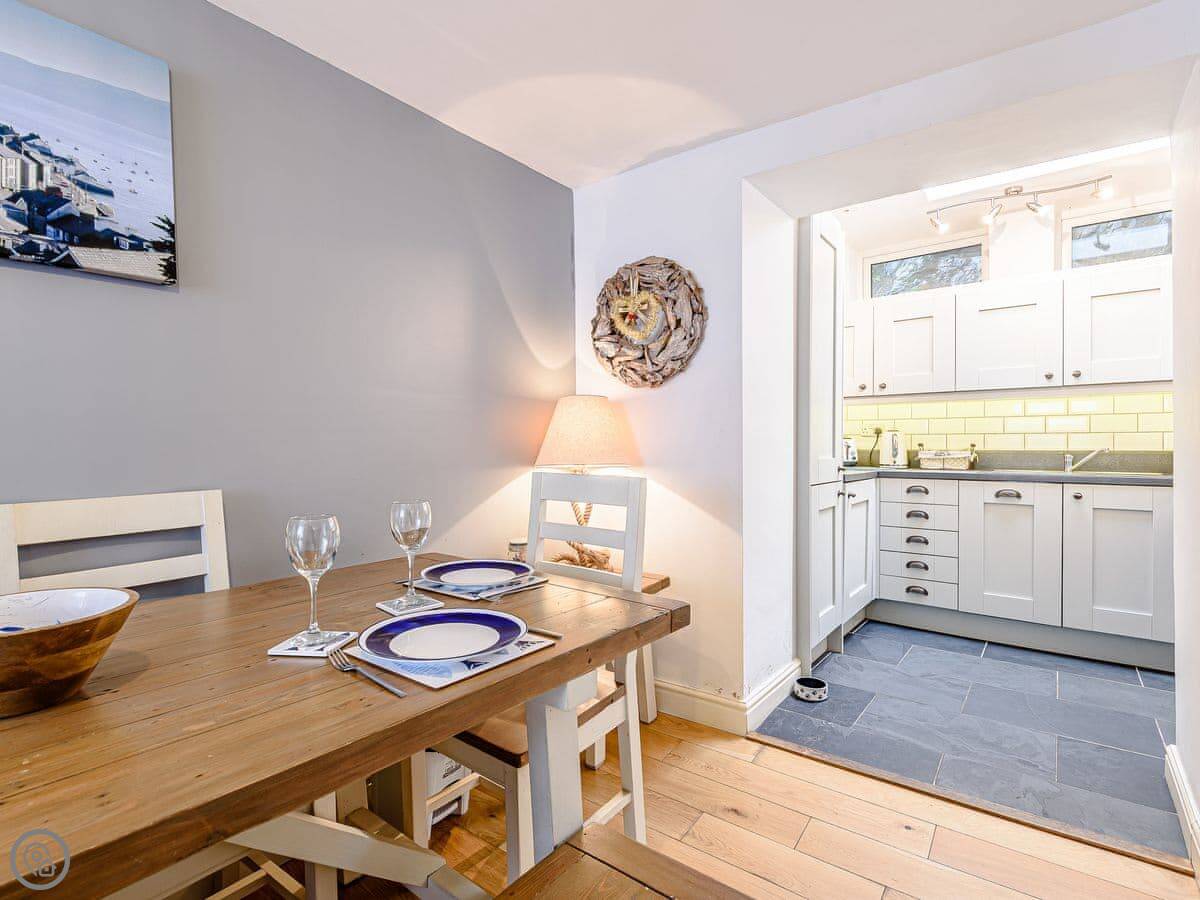 It sleeps six. Three bedrooms, one bathroom. The bathroom is upstairs. It's got a dishwasher and a washing machine. There's a small, enclosed garden out the back with a patio and a barbecue. The stairs are fairly steep.
