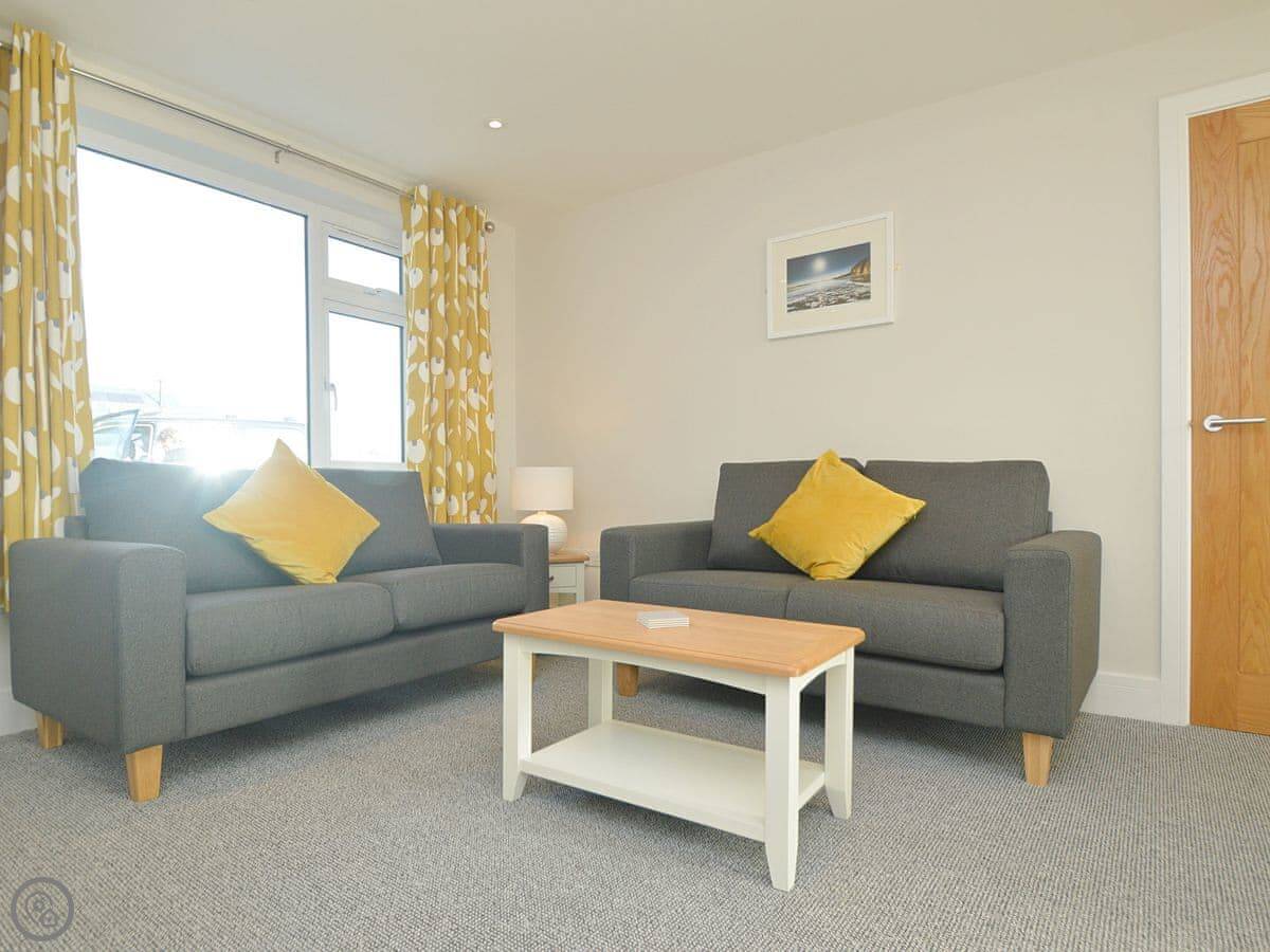 It sleeps four. Two bedrooms, one bathroom. No pets, sorry. It's got a 4 Star rating, so it's well equipped and comfortable. You’re on the ground floor. There's a step up into each bedroom, but the main living space is level. The garden out the back is enclosed, with a table and chairs.