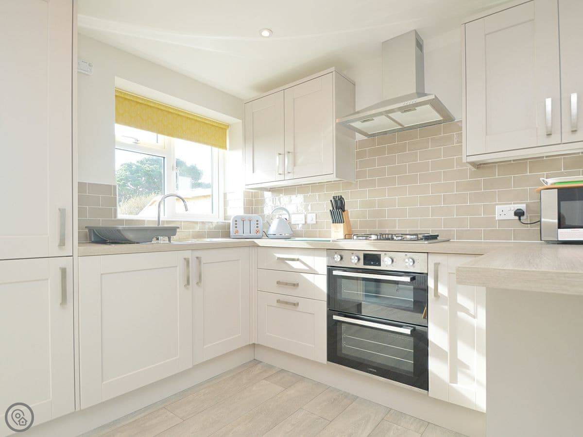 The bungalow itself is straightforward. Open plan kitchen and living room. Wi-Fi, TV, washing machine. Bedding and towels come with it. There's parking right outside.