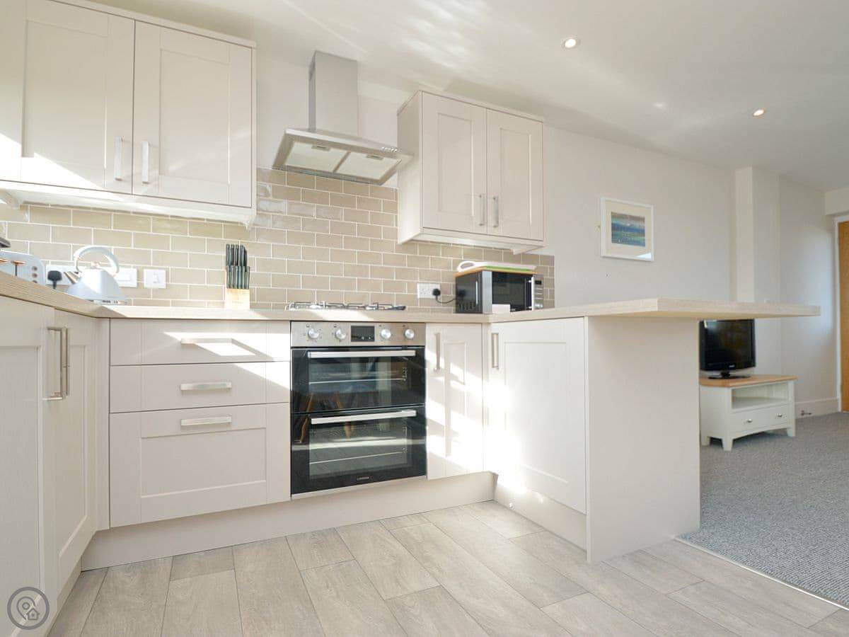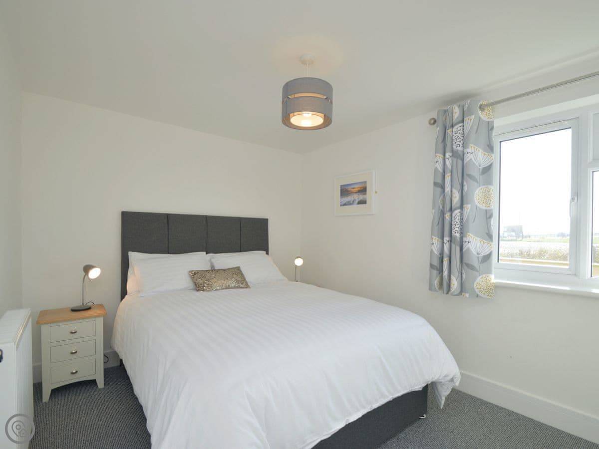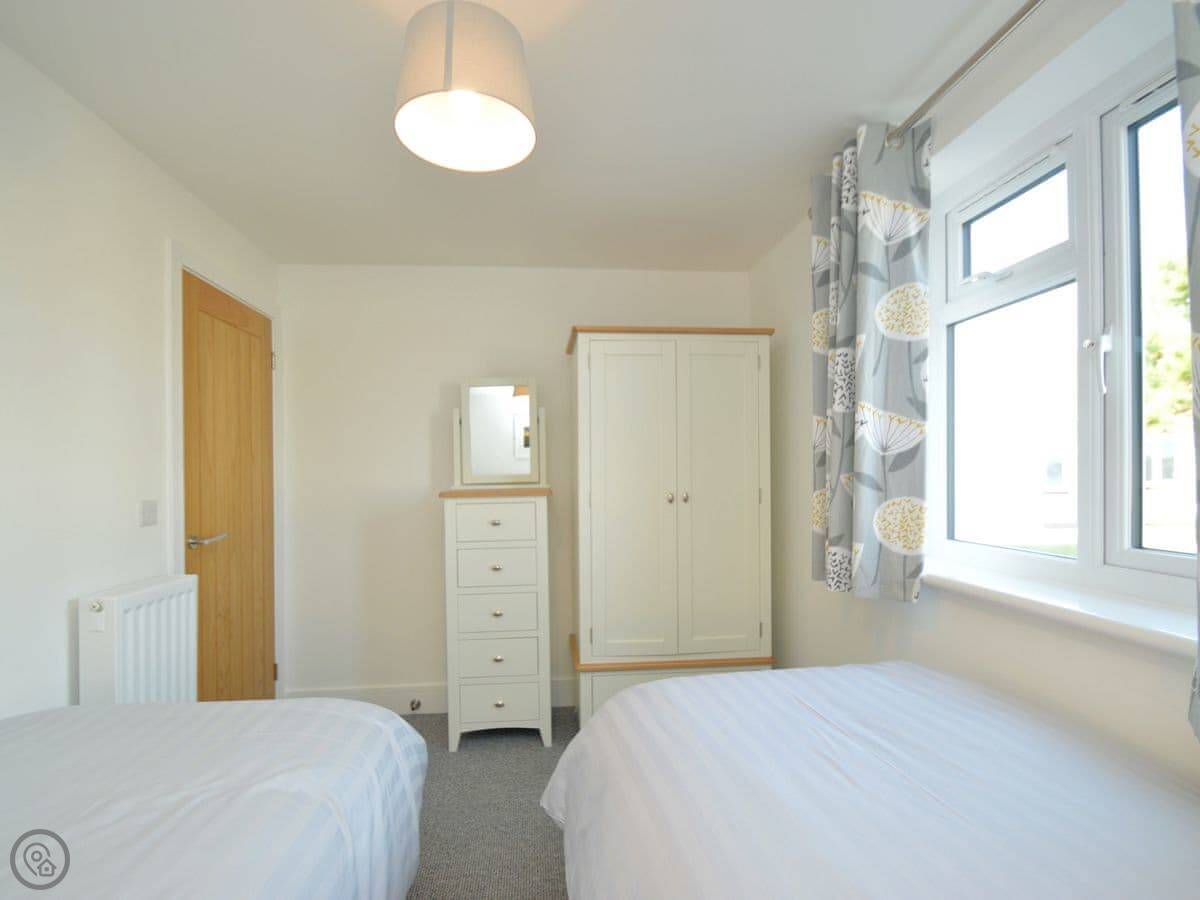 It sleeps four. Two bedrooms, one bathroom with a shower. It's got a 4 Star rating. It's clean and modern, not old-fashioned. The doorways are wide and there are no steps at the entrance, so it's suitable for wheelchairs or if you struggle with stairs.