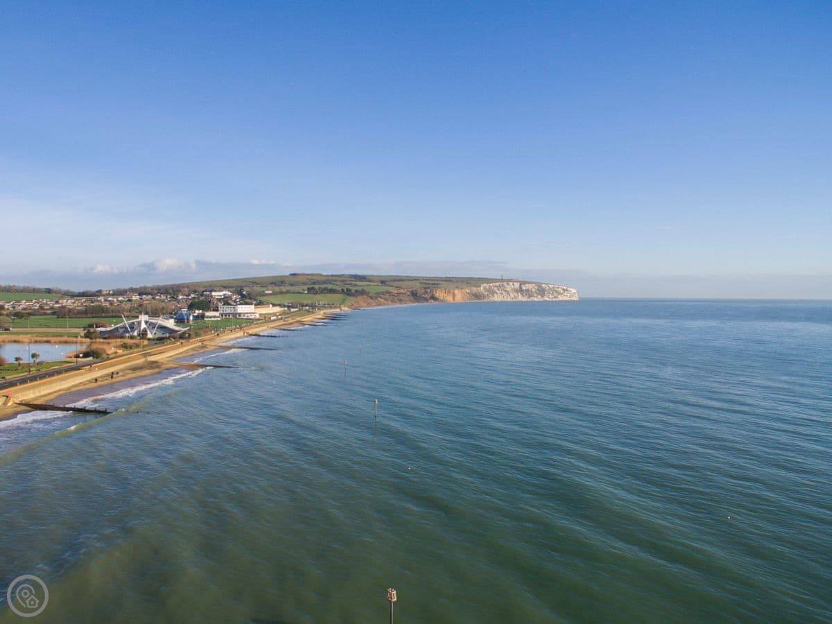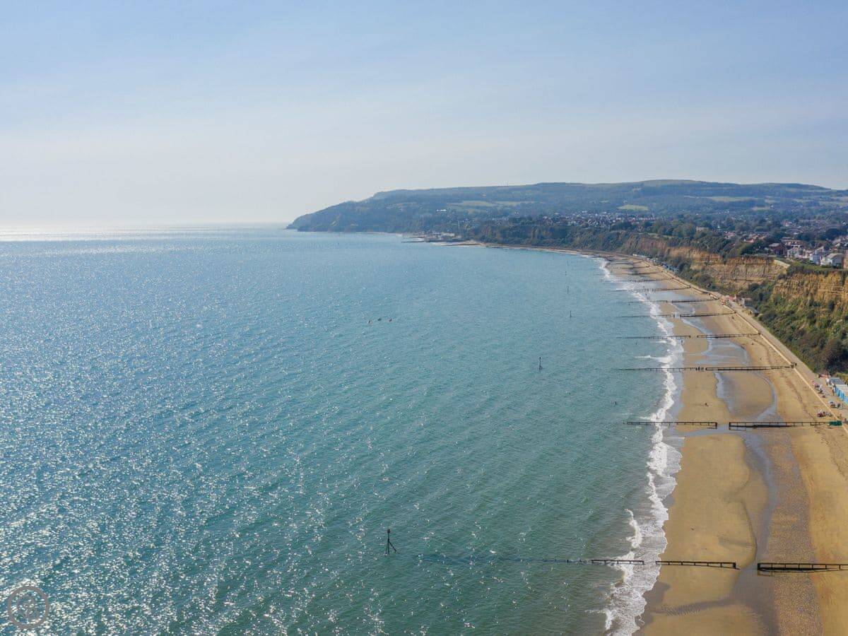If you turn left and walk along the seafront, you'll get to Sandown in about ten or fifteen minutes. It's a classic seaside town with a pier, amusements, and that sort of thing. If you turn right and walk, you'll go towards Shanklin. It's a nice flat promenade walk.