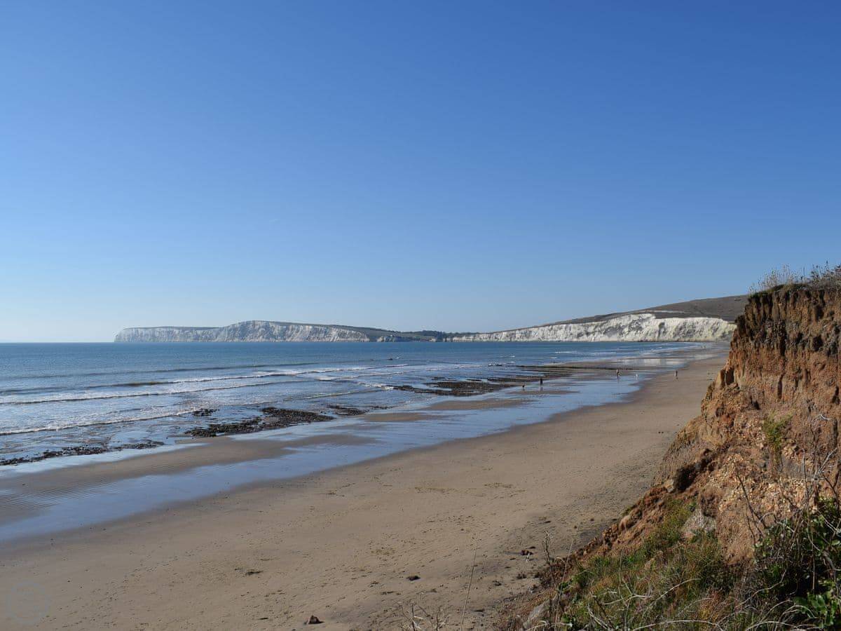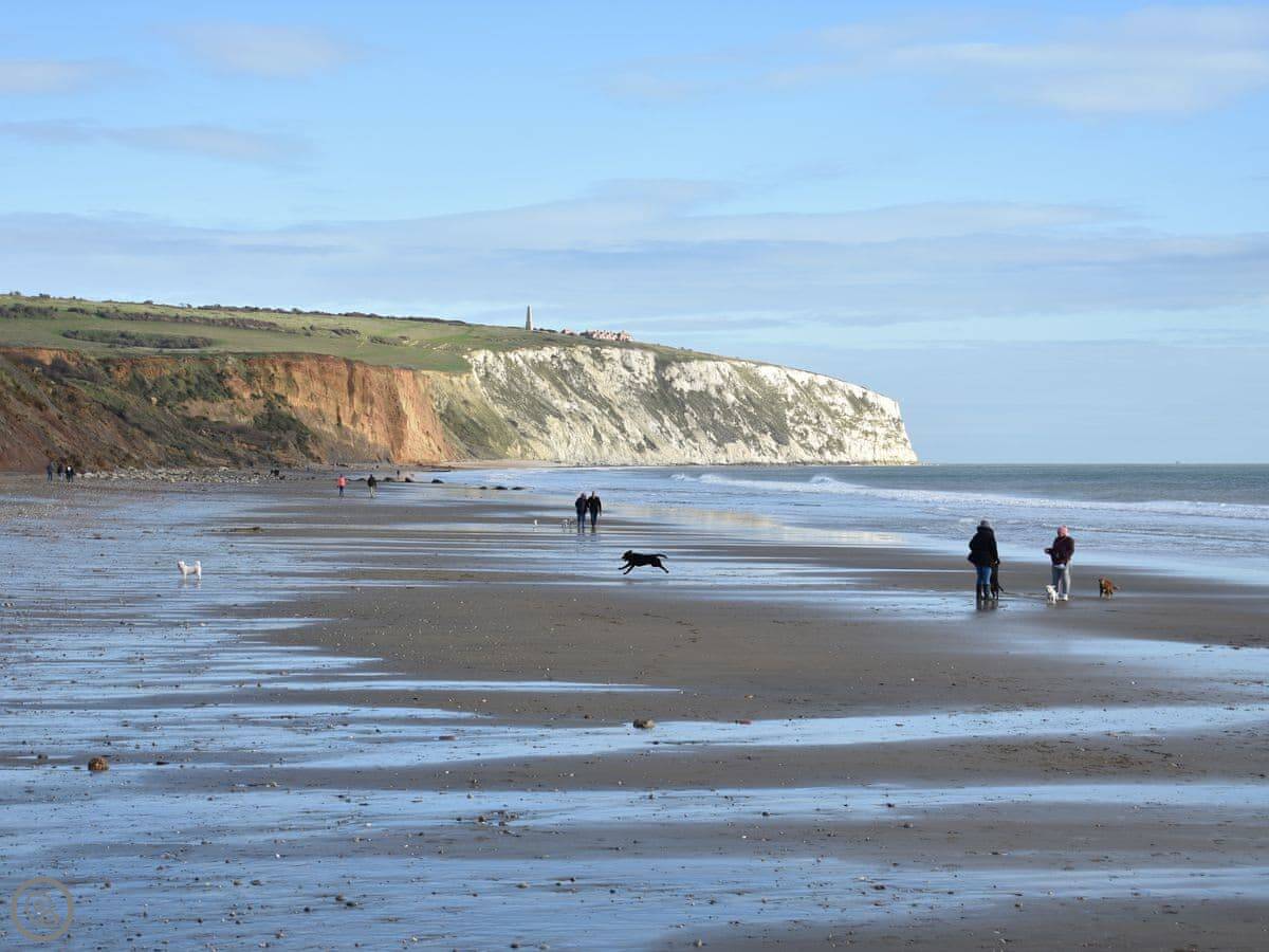 The beach there is sandy and good for swimming. You can see the red cliffs. If you're interested in fossils, the Dinosaur Isle museum is a few minutes walk away. They do guided fossil walks on the beach.