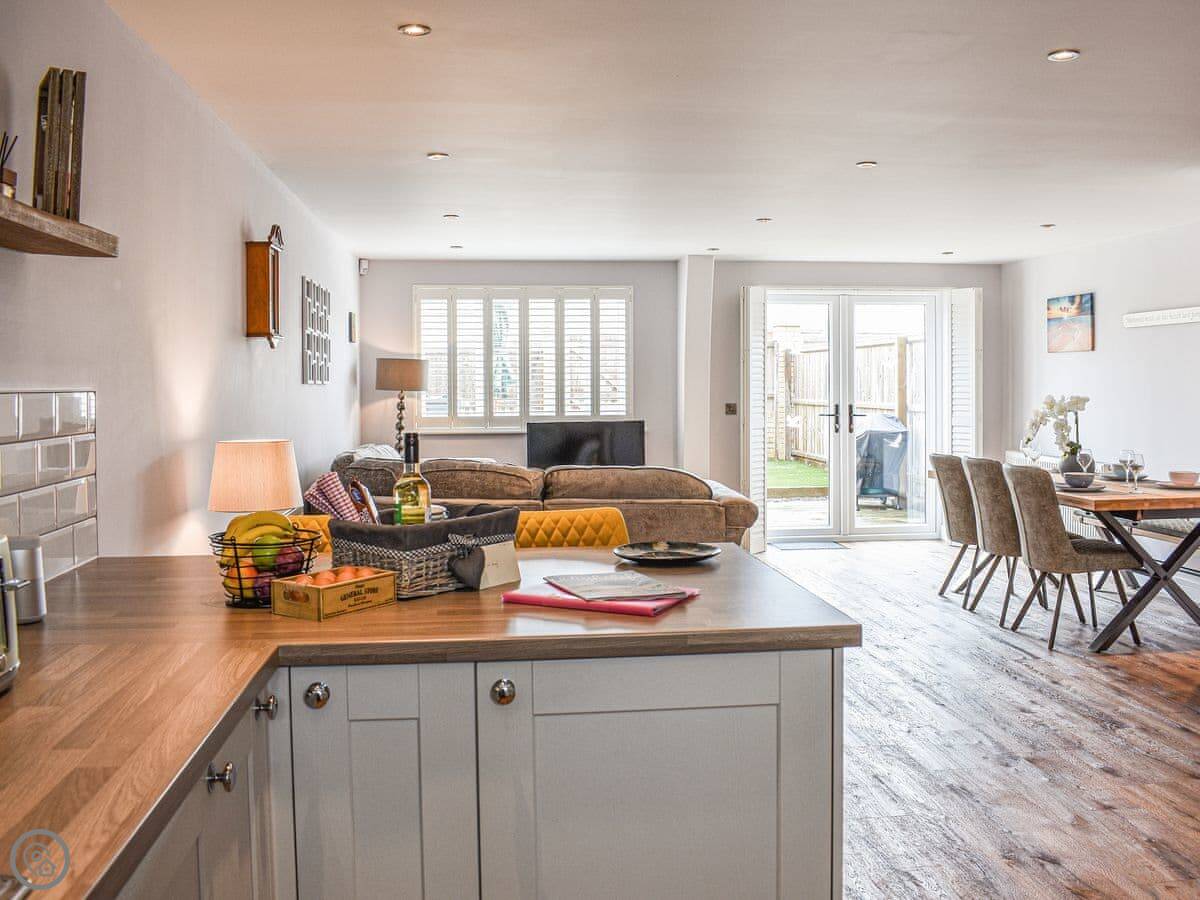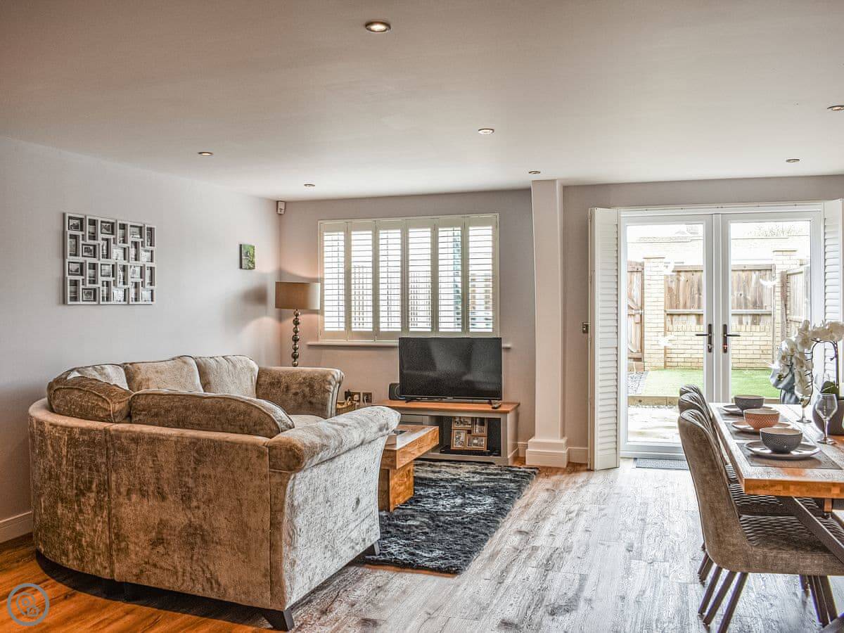 Downstairs is all open plan. There are French doors out to the garden. The garden is enclosed, which is handy. There's parking on the drive.
