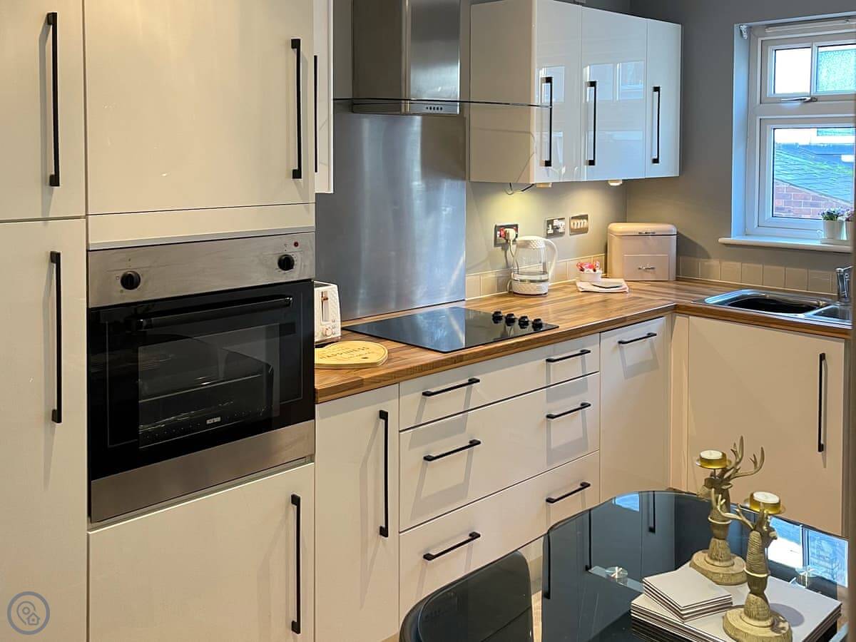 This wonderful duplex apartment is spacious and bright with a homely feel about it. It hosts a large living room with glass doors opening out onto a Juliet balcony so that you can take in the views up to the abbey. There is a well-equipped kitchen.