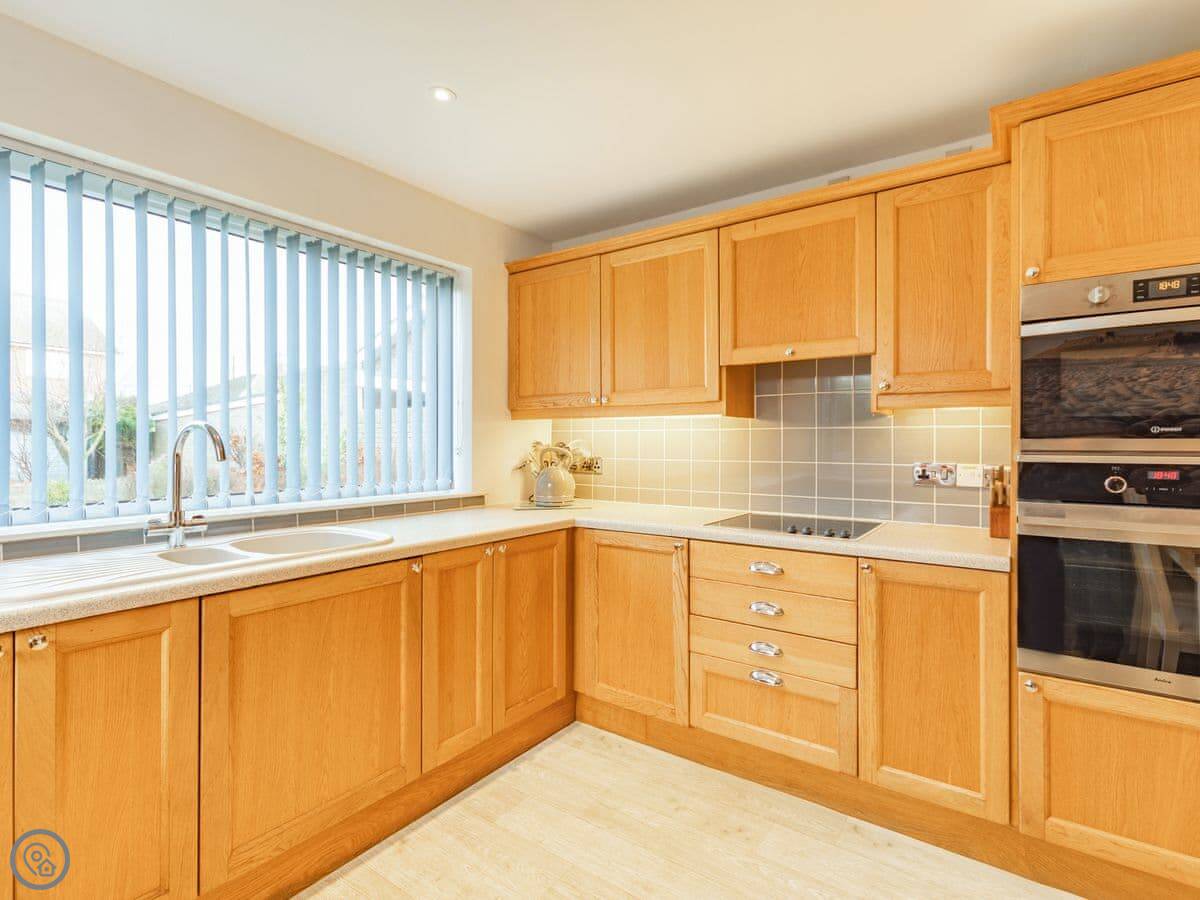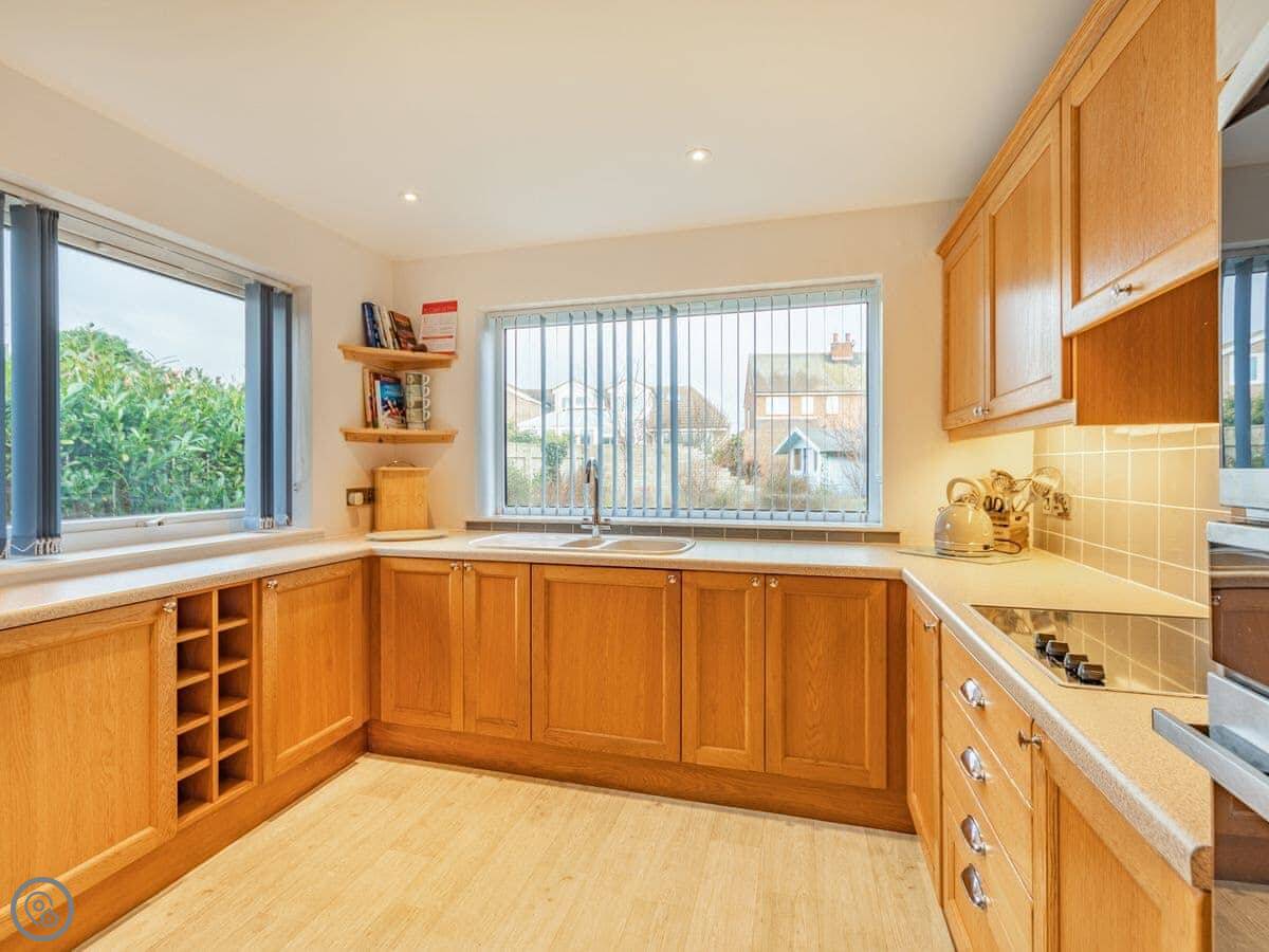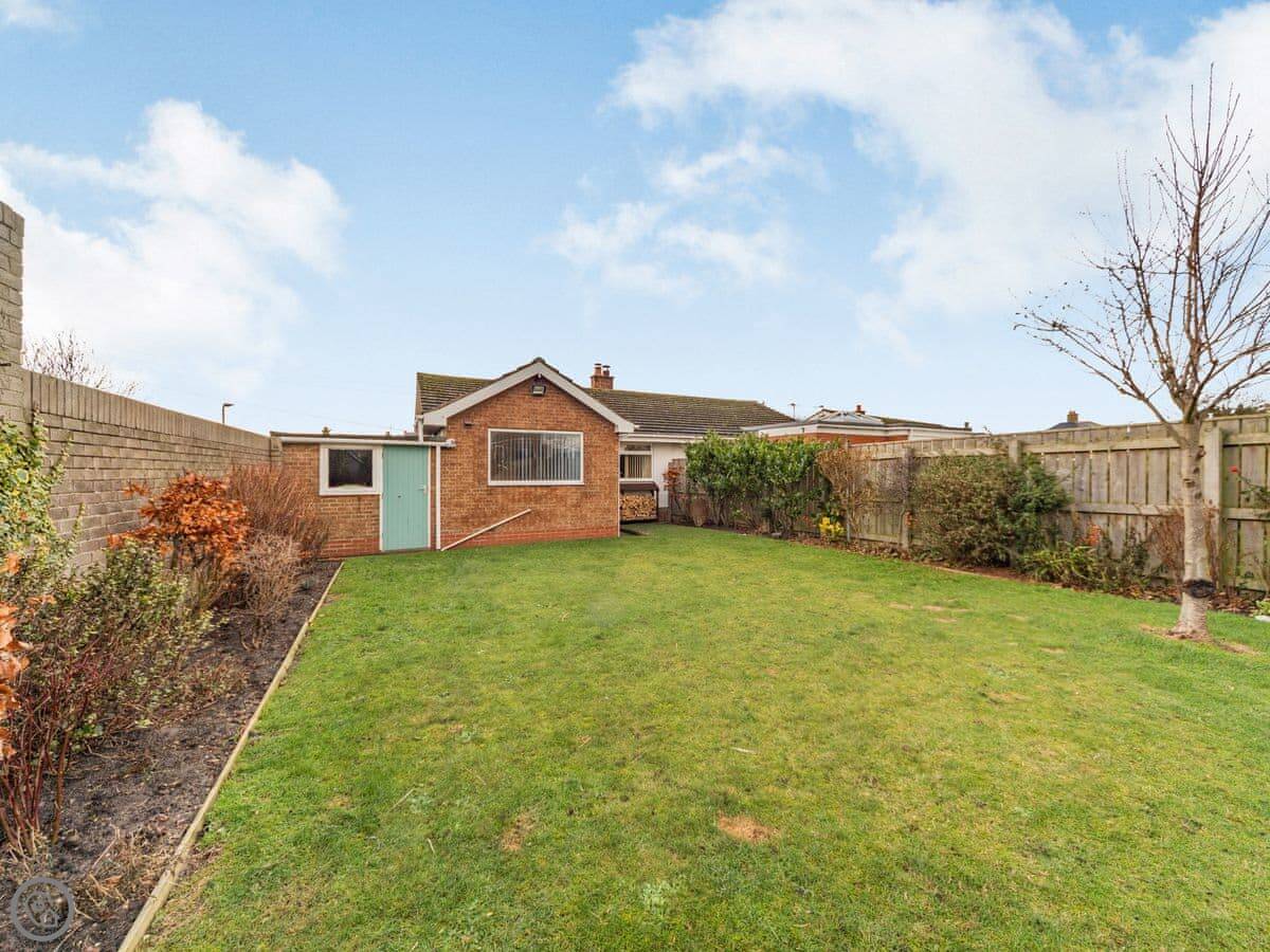 The kitchen looks out onto a garden at the back. It's a lawn, enclosed. There's a patio area with a table, and you can use the barbecue.