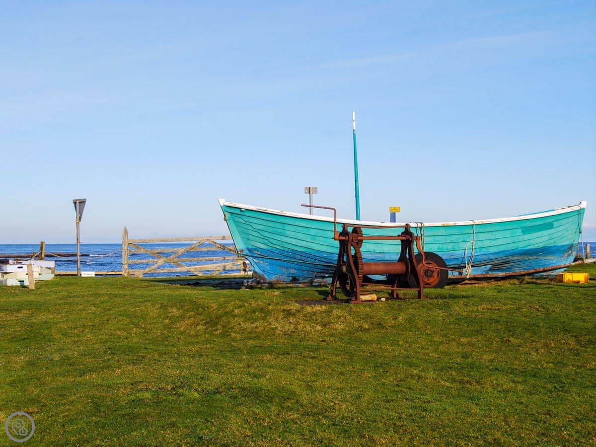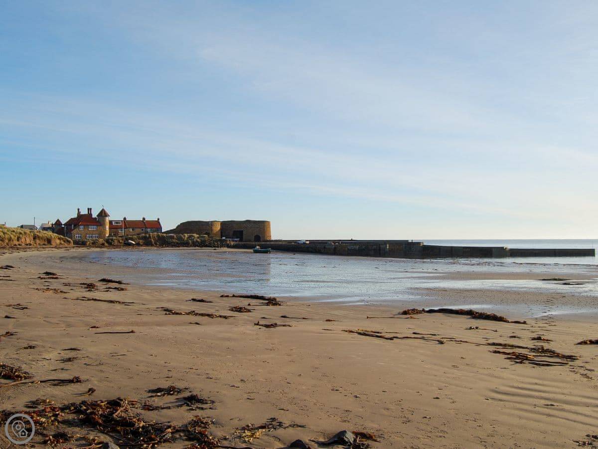 Beadnell's a small village. You can walk to the shop, a pub, and a cafe in a few minutes. The beach is about a five minute walk. It's a sandy bay, part of a much longer beach that goes up to Seahouses. People go there for windsurfing and kayaking.