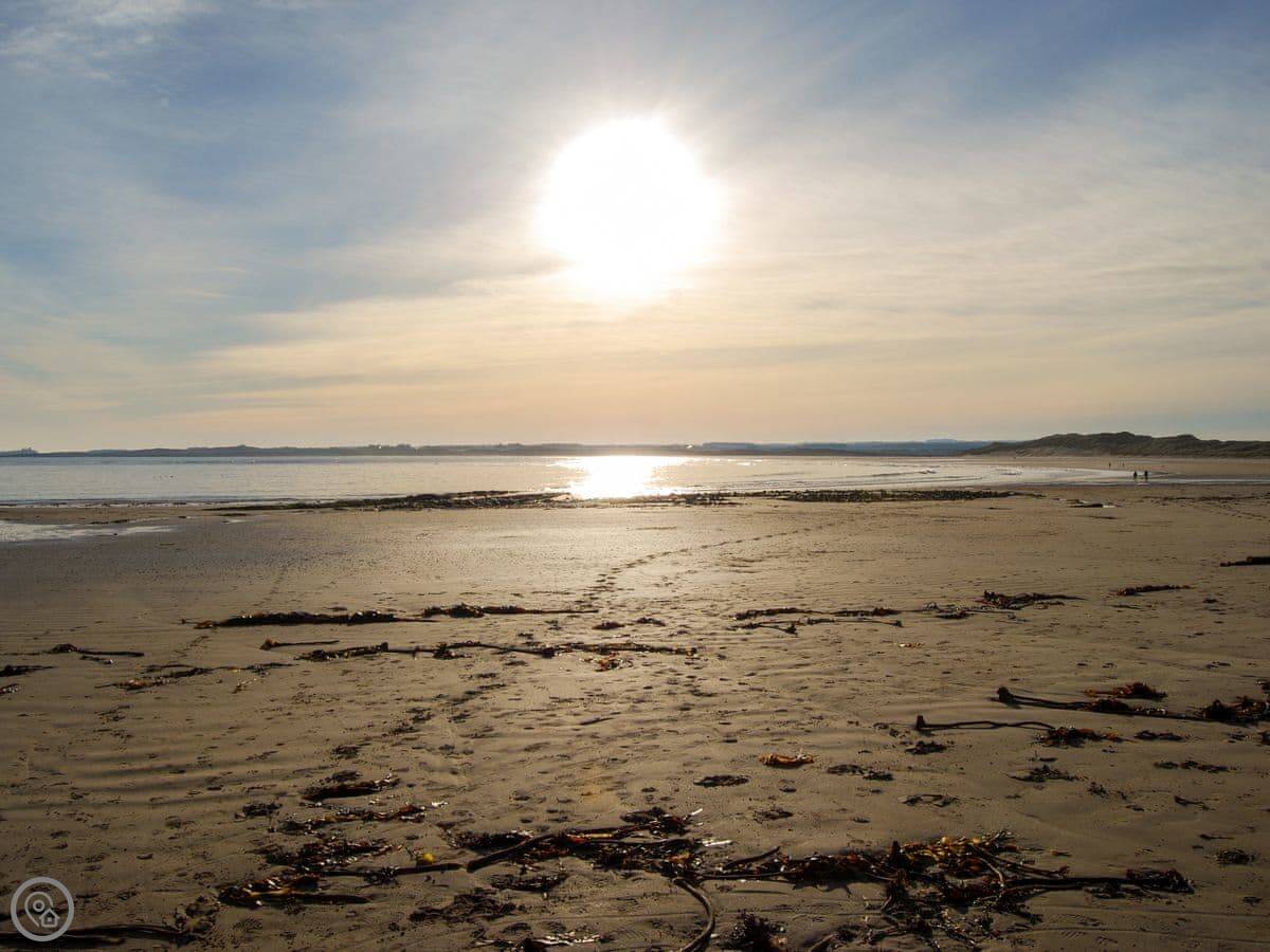 Bamburgh is about five miles up the coast. The castle is very big. You can see it for miles. You can also see Lindisfarne, or Holy Island, from the beach here when the tide's out.