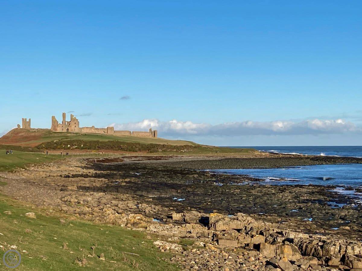 Alnwick is inland, maybe a twenty minute drive. The castle is there, and the Alnwick Garden. The garden has a big treehouse and a large water feature.