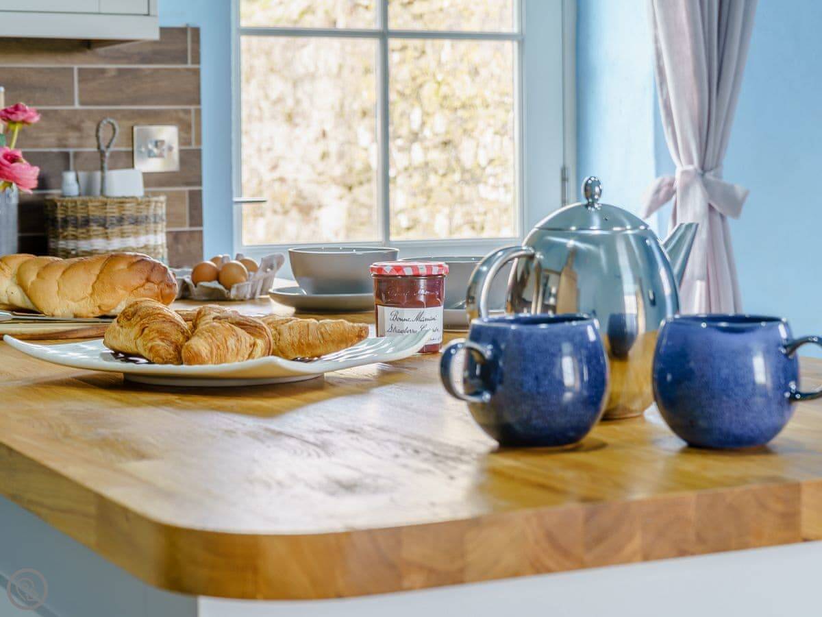 In terms of things here: there's a washing machine, dishwasher, WiFi, and TV. Bedding and towels are included. We can provide a cot and highchair. You can bring up to two dogs.
