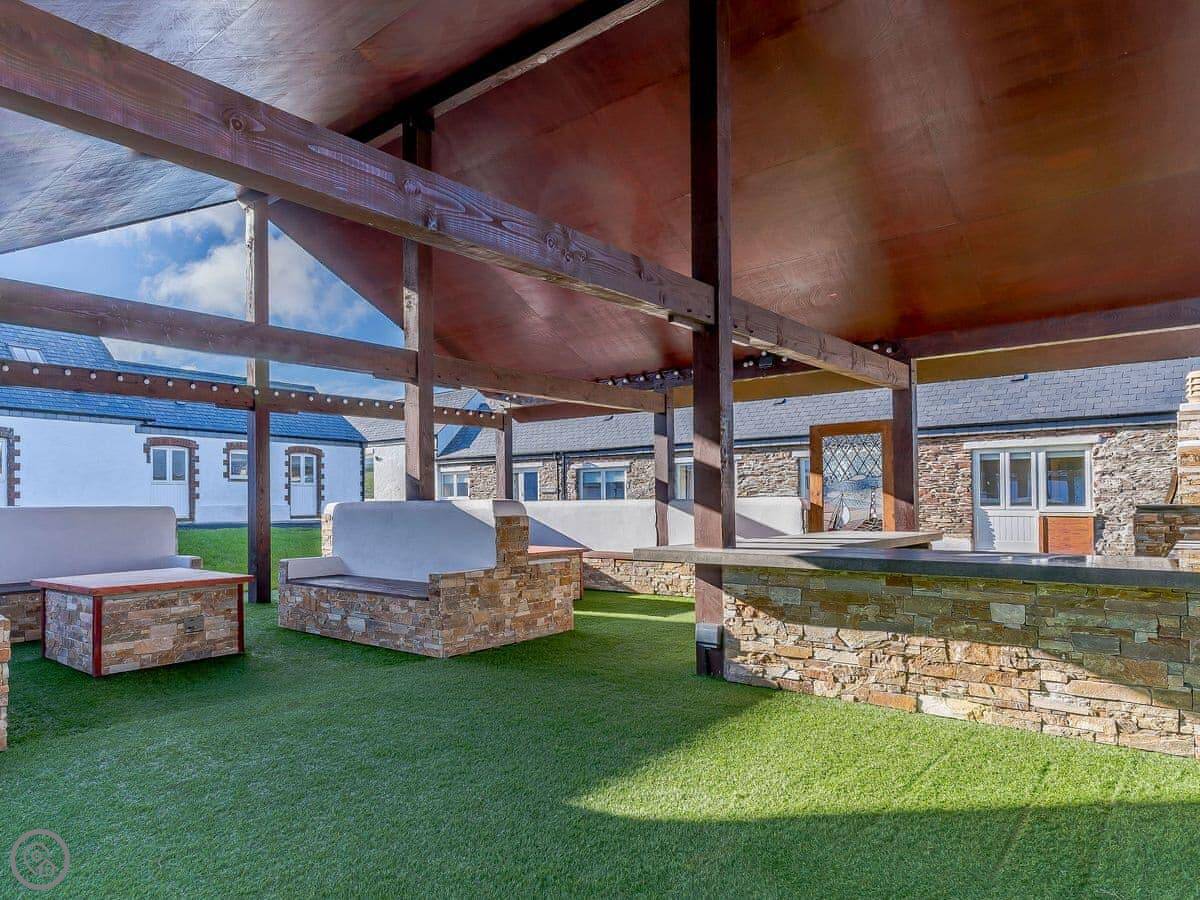 Outside, there's a shared courtyard with a pizza oven, a BBQ, and a fire pit. There's also table tennis and a small football area. We've got fishing ponds on the farm. You can park right outside, and there's an electric vehicle charger.
