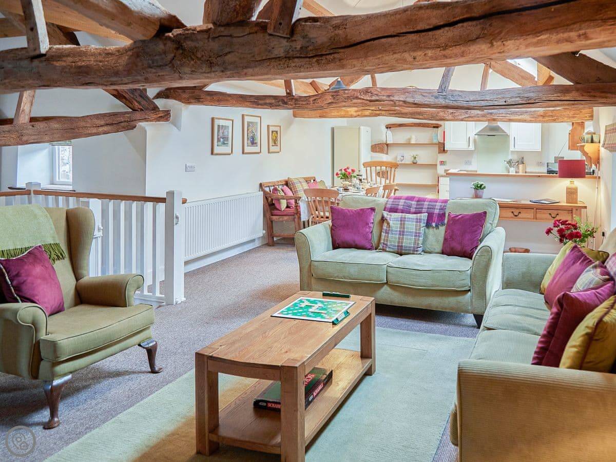 Toddles Barn is tucked away in the corner of the traditional farming village of Skelton nestling in the Cumbrian countryside. The 17th-century barn was originally stables and hayloft for attached Church House . This upside down 3 bedroom barn is bursting with character, charm and beams galore. Enter an unassuming doorway into a generous hallway, ideal for all your coats and boots. A traditional stone floor adds real character as well as being practical. Sleeping 6 people with 2 spacious kingsize bedrooms, 1 with en-suite facilities, and 1 smaller twin-bedded room which can be made into a 6ft double. The main bathroom has real country style with wood panelling, roll top bath and separate power shower. Once upstairs the barn opens out to an amazing large social space. The open plan living area has 2 large comfy sofas and chairs for relaxing. The fantastic wood burner is guaranteed to keep you warm even on the coldest night. The occasional cow from our neighbouring farm may break the silence and if you are lucky they will sometimes walk right past your bedroom window on the way to the fields to graze in summer. Due to the nature of the property and the fact there are so many wonderful beams - it might not be suitable for giants!! Hopefully you will find the beams a real fantastic feature and memorable for all the right reasons.